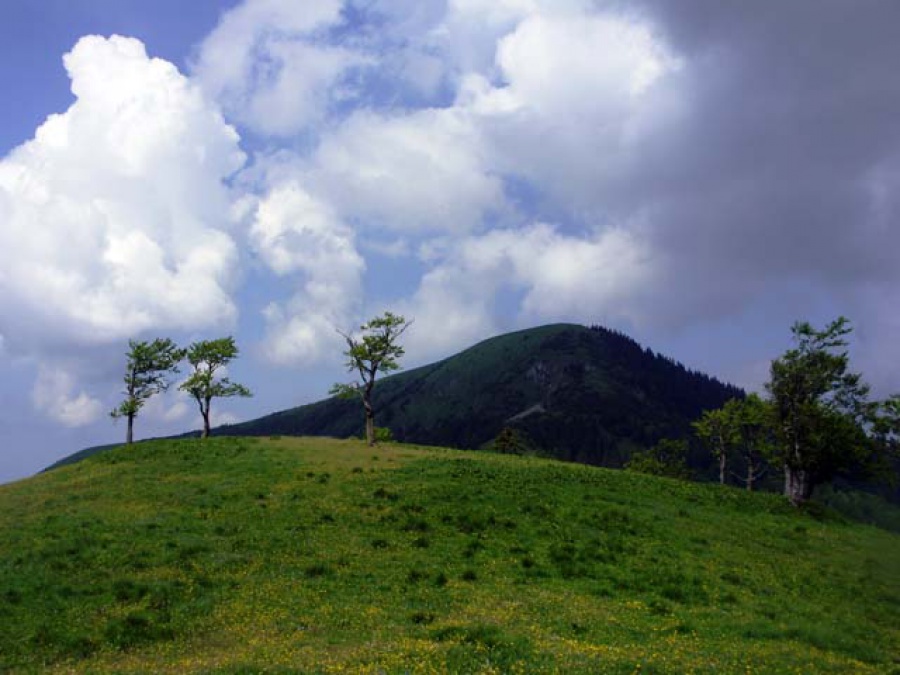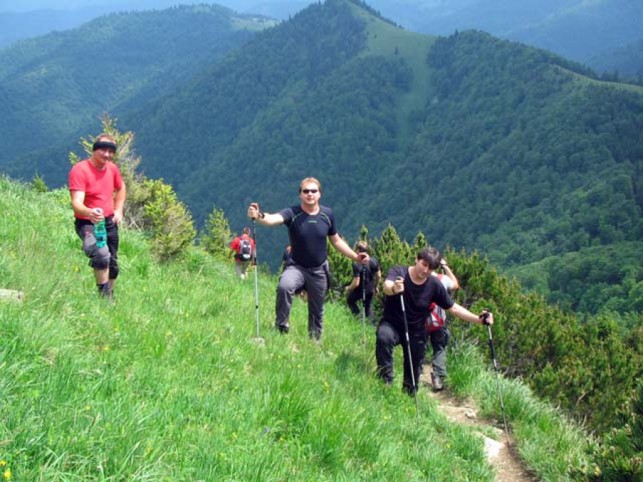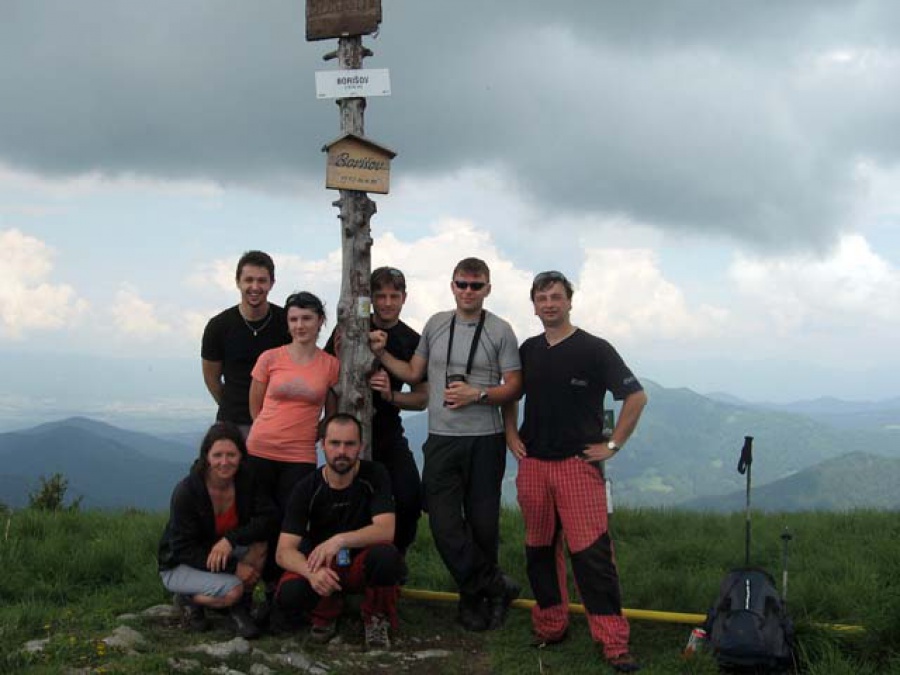 Vystúpili sme vo Vyšnej Revúcej, každá dvojica obdržala mapu (tentoraz ozajstnú, papierovú) a hor sa do hôr. Vytvorené skupinky sa cestou premiešavali podľa toho, komu ako zlyhávala kondička, lebo cesta na vrchol bola síce kratšia ako z Teplickej strany, ale o to strmšia. Prvý dlho očakávaný vrchol (turistický) Chyžky sme dosiahli s dobrou časovou rezervou. Nehorázny stupák. Chvíľa oddychu po hrebeni a popod Plosku, ktorú si nechávame ako bonus na koniec trasy, sa pomedzi ovce predierame k chate pod Borišovom. Tu sa podaktorí posilňujú, no ja keď vidím, čo ma čaká, radšej stúpam pomaly ďalej. Bože, to prevýšenie na konci je neskutočné, myslela som, že budem tesne pred vrcholom volať o pomoc. Ale našťastie sme to všetci, ktorí sa na ten výstup dali, dokázali - dokonca aj Dedo, ktorý nadával podstatne viac ako ja - sa ocitol na Borišove 1.510 m. n. m s krásnym výhľadom. Povinný oddych, pivo a svačinka na chate sú samozrejme sprevádzané vtipmi, historkami a smiechom. To je to, čo mám okrem výhľadu na turistike najradšej.