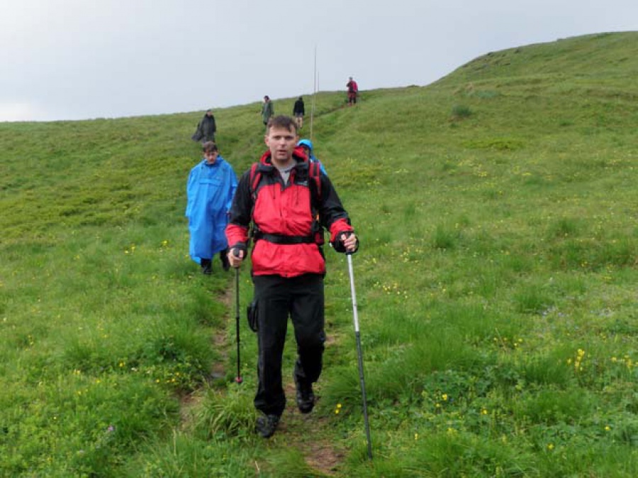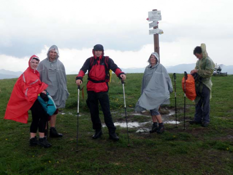 Totálne mokrí zostupujeme, aj keď po tej búrke je lepšie napísať šmýkame sa, dolu do dediny. Cieľ, vytúžený cieľ dosahujeme o dve hodiny skôr ako bol pôvodný plán a preto naberáme smer miestne Pohostinstvo, kde dojedáme zásoby, prezliekame si suché veci a živo diskutujeme o aktuálnych spoločenských problémoch. Som rada, že som spoznala ďalších členov klubu a jediné, čo môžem trošku ľutovať je, že som sa nemohla aj ja trošku škodoradostne (samozrejme v dobrom) zasmiať na elegantne-štýlovom páde organizátora, ktorý prišiel do cieľa ako jedno bravko.