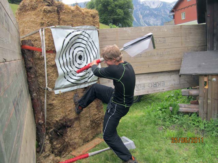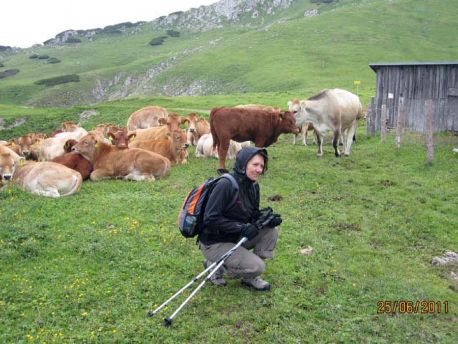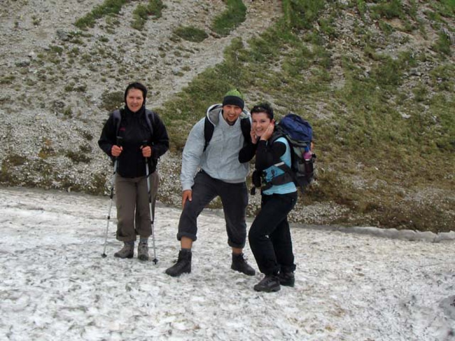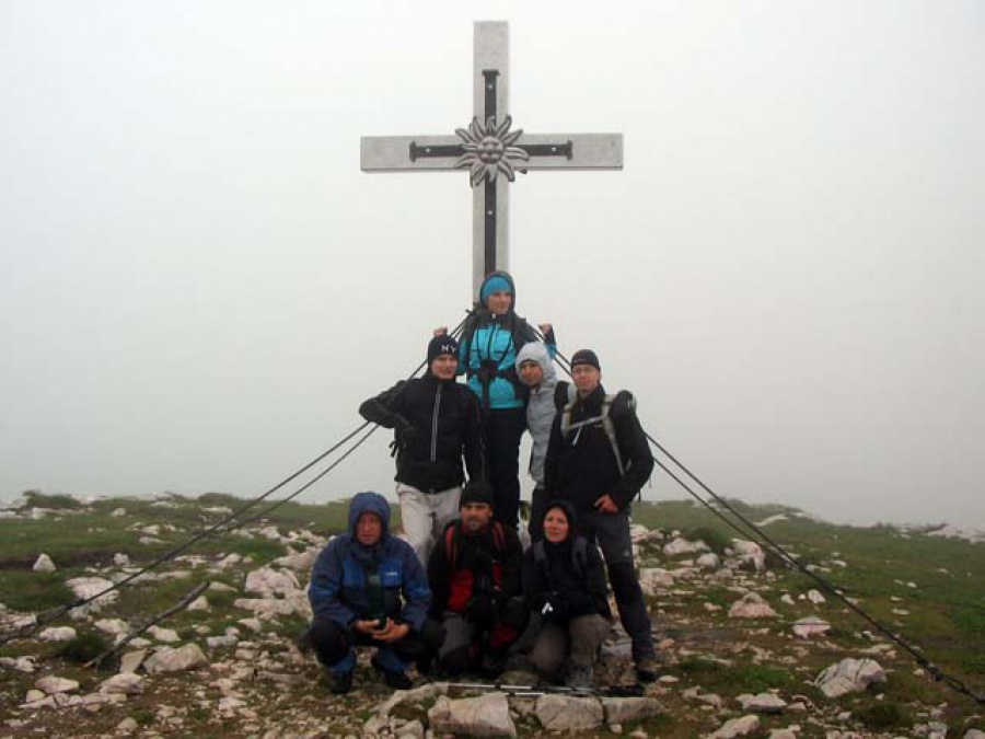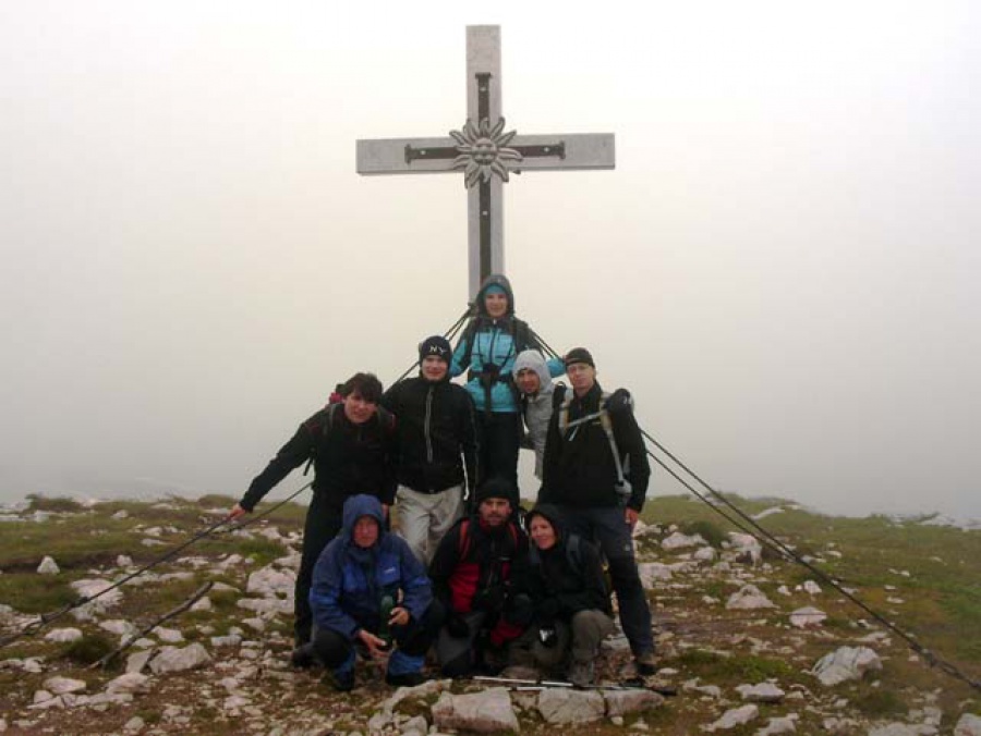 Cesta autobusom trvala dosť dlho, takže keď sme konečne vystúpili v dedinke Altenberg an der Rax, všetci nadšene povyskakovali a preťahovali stŕpnuté končatiny a zadky. Pred nami sa črtala krásna alpská scenéria, vidina približne 7 hodinovej túry (podľa internetu), príšerný smrad z hnoja a na začiatok aj kúsok asfaltky. Tento povrch po asi pol hodine vystriedal turistický chodníček. Musím podotknúť, že dosť strmý. Funiaci, lapajúci po dychu, spotení sa štveráme k vrcholu, ktorý je stále v nedohľadne. Čím sme boli vyššie, tým viac sa do nás opieral vietor. Keď sme sa konečne vyštverali do nadmorskej výšky 1.700 m. n. m., museli sme vytiahnuť teplé bundy, čiapky a rukavice. Windberg (pre nerozumejúcich: Veterný vrch) je naozaj adekvátny názov. Prvé spoločné foto pri smerovníku, na pravo smer Windberg, na ľavo Schneealpen-Haus chata. Pár ľudí sa rozhodlo ísť najskôr na chatu, no členovia, svišti a sympatizantky KST Manín zamierili rovno k vrcholu. Stúpanie už nebolo také prudké ako doteraz, ale na plošine pod Windergom stúpilo pár šťastnejších do exkrementov domácich zvierat (vraj im to prinesie šťastie, no ja som bola radšej, že mám čisté a voňavé topánky). Musím povedať, že sa naozaj čudujem ľuďom, ktorí farmárčia v nadmorskej výške 1.700 m a nečudujem sa, že tie kravy, čo dávajú v reklame na čokoládu Milka, sú také fialové. V takom vetre a zime som ani ja nemala ďaleko od tejto farby. Pár spoločných foto s vrcholovým krížom. Na chvíľu sa nám na potešenie väčšiny ukázal aj kruhový výhľad. Všetci hneď hádzali pózy pred fotoaparátom, aby mali foto nielen v hmle, ale aj s výhľadom na okolie. Rýchlo zostupujeme na chatu, lebo v tom vetre sa naozaj ťažko dýchalo a bola zima. Posilnení čajom (tí, ktorí sa ho dočkali), teplou polievkou a sladkosťami zostupujeme pomaly naspäť k autobusu. Niekedy je zostup ťažší ako to najstrmšie stúpanie. Aj moje kolenné kĺby sa po čase začínali ozývať, a tak som bola rada, že sme to celkom rýchlo zbehli. Internetová 7 hodinová predpoveď sa nevyplnila, prešli sme to za 5 a pol hodiny, takže do príchodu ostatných účastníkov zájazdu sme mali čas. Poprezliekali sme sa do suchého a voňavého, vyložili sme svačiny a otvorili sa pivá. K príjemne strávenému dňu prispel aj fakt, že namiesto mrznúceho dažďa a -3 stupňov, ktoré hlásili meteorológovia, nás prekvapilo príjemné sem-tam aj slnečné počasie a samozrejme ľudia, s ktorými som vysokohorskú turistiku absolvovala. V dedine mali práve nejaké slávnosti, tak sme si zahádzali na terč megaveľkými šípkami, pokochali sa na veteránoch áut a traktorov, ale najviac zaujala drevená kadibúdka, ktorá mala vo vnútri splachovací záchod a elektrickú zásuvku. Máme sa čo od tých Rakúšanov ešte učiť. O 17.00 h prišli aj poslední zblúdilí turisti, ktorí netrafili správnu odbočku a mohli sme vyraziť smer domov. Druhý autobus také šťastie nemal. Jeden zblúdilý turista im stále chýbal a ako sme sa neskôr dozvedeli, prišli domov až neskoro v noci, našťastie v plnom počte.