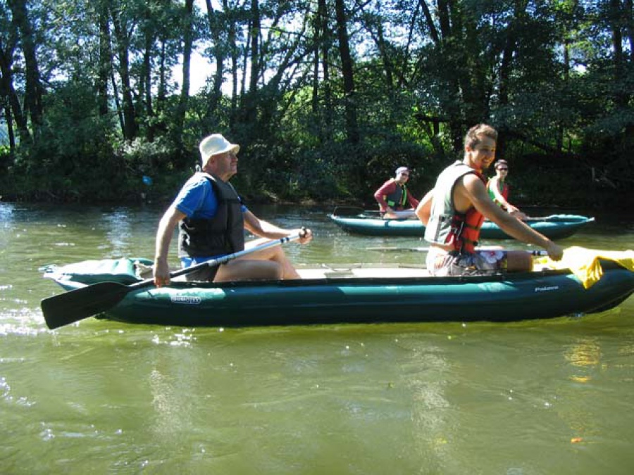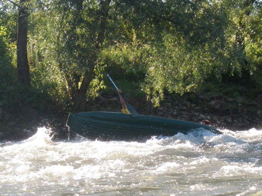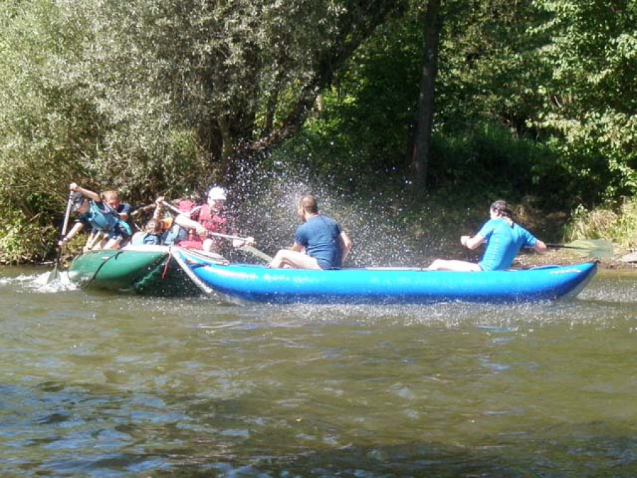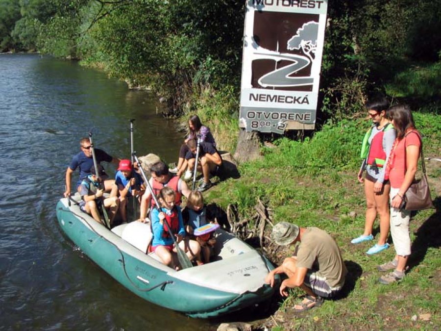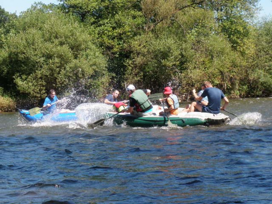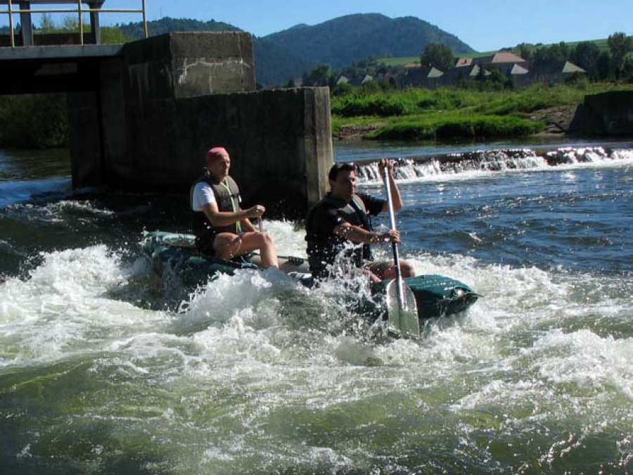 Večer, pri dobrom jedle, sme spomínali na predchádzajúce spoločné akcie. Padlo rozhodnutie, že na druhý deň sa necháme vyviezť niekde nad Podbrezovú a skončíme pri motoreste v Nemeckej. Nedeľný splav začal skvele. Už po pár sekundách na vode Aďa nezaváhala, chytila sa konára a ukážkovo vypadla z člna, opäť za nadšeného jasotu detí. Čistá voda a nádherný slnečný deň priam zvádzali rozpútať nejaký vodný súboj. Rafťáci si ako protívnika vybrali kanoe obsadené Leninom a Ďusom. Zopár menších súbojov sa odohralo už počas plavby, bolo ale jasné, že k záverečnej rozhodujúcej bitke dôjde až niekde v závere splavu. V momente, keď kanojka začala útok, zmenili sa pádla v rukách detí na vodné pušky a každý špliechal ako vládal. Výsledkom bola kompletne premočená posádka obidvoch lodí a zážitky, na ktoré budeme dlho spomínať.