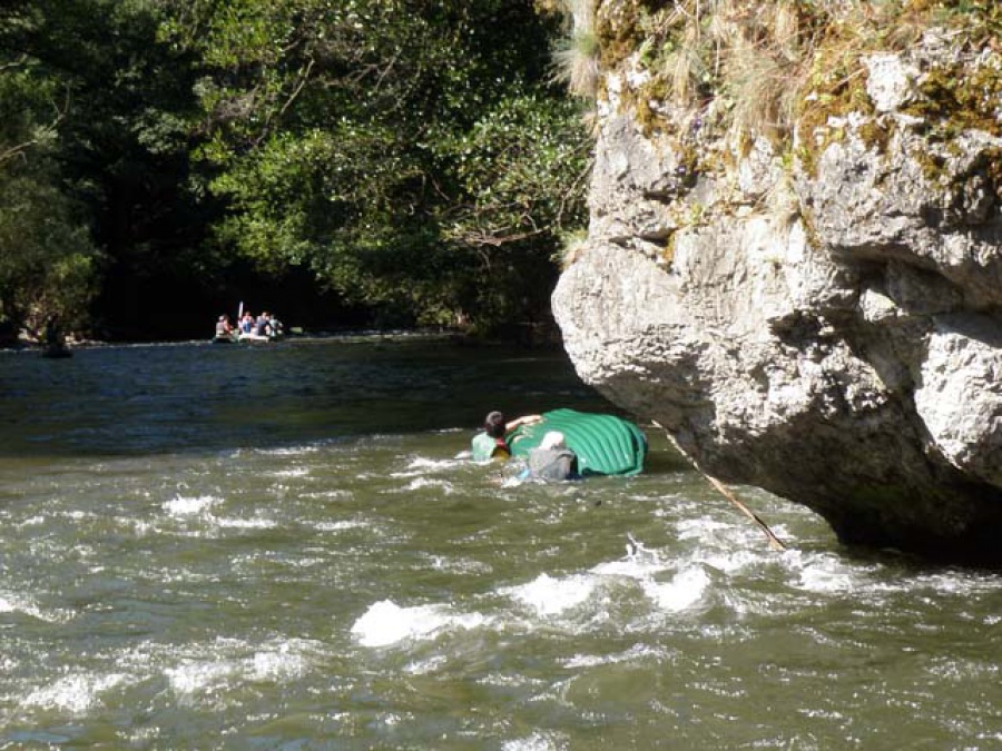 Na trase nás čakali rýchlejšie aj pomalšie úseky, perejky, jedno prenášanie lodí v Šalkovej a jedna veľká skala, popri ktorej ide silný prúd. Presne tam sa ako prvá prevrátila kanojka s Jakubom, ktorý sa stal legendou už na júnovom splave Oravy. S občasnými zastávkami na občerstvenie, v príjemnom počasí, sme postupne zdolávali jednu prekážku za druhou.