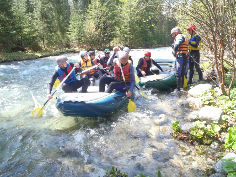 Rieka Belá ponúka nádherné technicky náročnejšie splavovanie a veľa minutých síl na pádlovanie. Množstvo zákrut, padnutých stromov, trčiacich konárov a pníkov, priezračná 3-4 stupňová voda zabezpečili každému nezabudnuteľné zážitky. Špeciálne asi tým, ktorých vyhodilo do vody a museli plávať v silnom prúde a tiež tým dvom šťastlivcom, ktorých trafil peň spadnutého stromu do stehna a raft sa na ňom zasekol. Stalo sa to na mieste so silným prúdom, a tak mali naši chalani aj s dvoma inštruktormi problém s jeho vyslobodením. Milí rekreanti sa doplavili na konečnú, povyzliekali neoprény, vymenili zážitky, vypili si na „dobro došli“ a šup do auta smer Trangoška. A tu ďalší zážitok s termotričkom. Maťo(kameraman, rybár) si nechal svoje termotričko sušiť v okne tak, že ho pricvikol. Zabudol naň a Marek v náhlej potrebe vyhodiť žuvačku otvoril okno a tričko uletelo preč.
