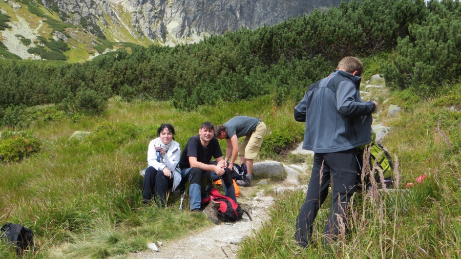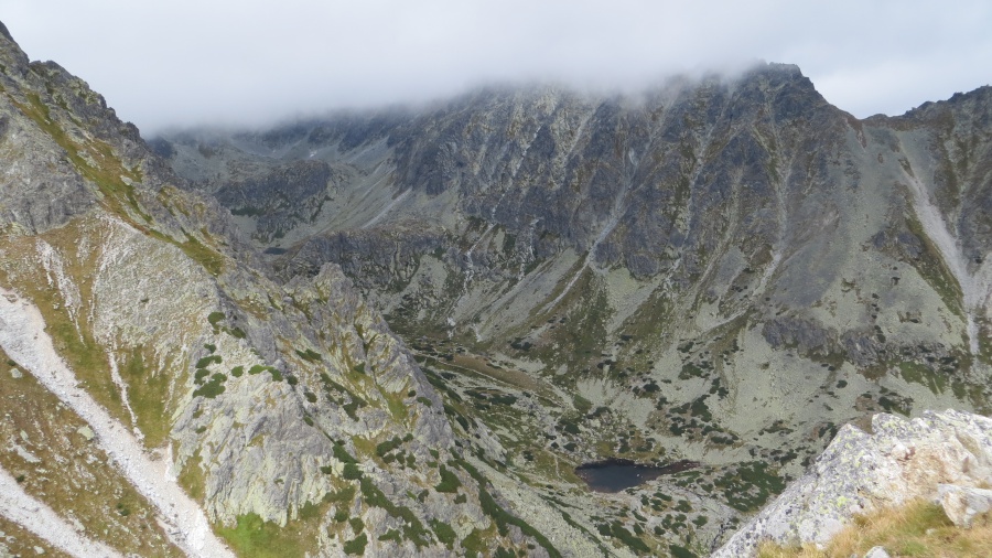 Na naše veľké počudovanie príchodom do sedla sa stal zázrak. Mraky sa rozostúpili, prestalo pršať a my sme to uvideli. Ten pohľad do doliny, keď sa aj dvojmetrový človek cíti ako tá najmenšia vec na svete. Konečne sme sa zastavili na dlhšiu chvíľu a vychutnali si toto horstvo, čo tu máme. Dali dole pršiplášte, až sa nám neplancú popod nohy na zostupe, keďže podklad bol štrkovitý, mohli sme sa rýchlo skotúľať. Pršiplášte sa posušili na povievajúcom vetríku. My sme mali razom lepšiu náladu, tak sa aj debata rozprúdila a keďže je to jednosmerný chodník, nemuseli sme vyhýbať oprotiidúcim, mohli sme kráčať aj vedľa seba. Na rázcestí pod vplyvom zlepšujúceho sa počasia sme sa rozhodli, že neideme ešte dole k Štrbskému plesu alebo pôjdeme ešte kuknúť, čo nové na Solisku.