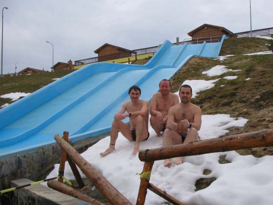 Nedeľa bol vyhradená relaxu. Navštívili sme Tatraland Liptovský Trnovec. Celodenný lístok v hodnote 540 Sk (na slovenské platy zaujímavá suma) sme sa snažili využiť naplno a preto sme odchádzali až po súmraku. V bazénoch okrem slovenčiny bolo počuť veľa češtiny a poľštiny. Teplota vzduchu niečo nad nulou, zamračené, teda ideálne miesto na oddych.