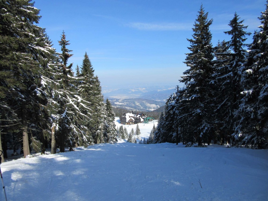Schádzame teda po modrej, napájame sa na čiernu. Podľa mňa zle vymyslené, že sa turistická križuje s lyžiarskymi svahmi, bolo to dosť nebezpečné, a tak rýchlo popri kraji zjazdovky mierime ku chatkám s občerstvením na chvíľu posedieť, pospomínať, poponúkať dobroty, zapiť, zajesť. Chýba mi to, človek si oddýchne od každodenných starostí.