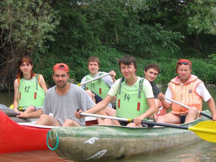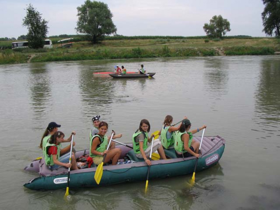 Nalodili sme sa v Mostoch pri Bratislave. Počas 4–hodinovej plavby sme spoznávali prírodnú scenériu pre nás Horniakov trochu netradičnú – zákutia Malého Dunaja (veľa napadaného dreva, vodné vtáctvo, živé, alebo mŕtve vodné ramená). Zastavili sme sa na Totemovej lúke (drevené vyrezávané sochy rôzneho žánru v nadživotných veľkostiach). Cieľ prvého dňa bol priestor pod vodnou elektrárňou Nová Dedinka. Tu sme prenocovali.