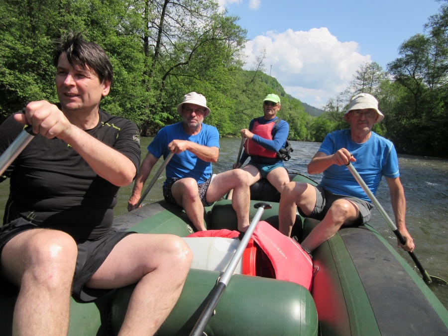 Celý servis (ubytovanie, zapožičanie raftu a prepravu) nám zabezpečoval počas troch dní náš dlhoročný kamarát Mišo Ryba Šaradin, s ktorým sa poznáme už mnoho rokov a nielen zo splavu na Hrone (niekoľko krát splav Soče v Slovinsku, rieky Noče v Taliansku a Belej na Slovensku).