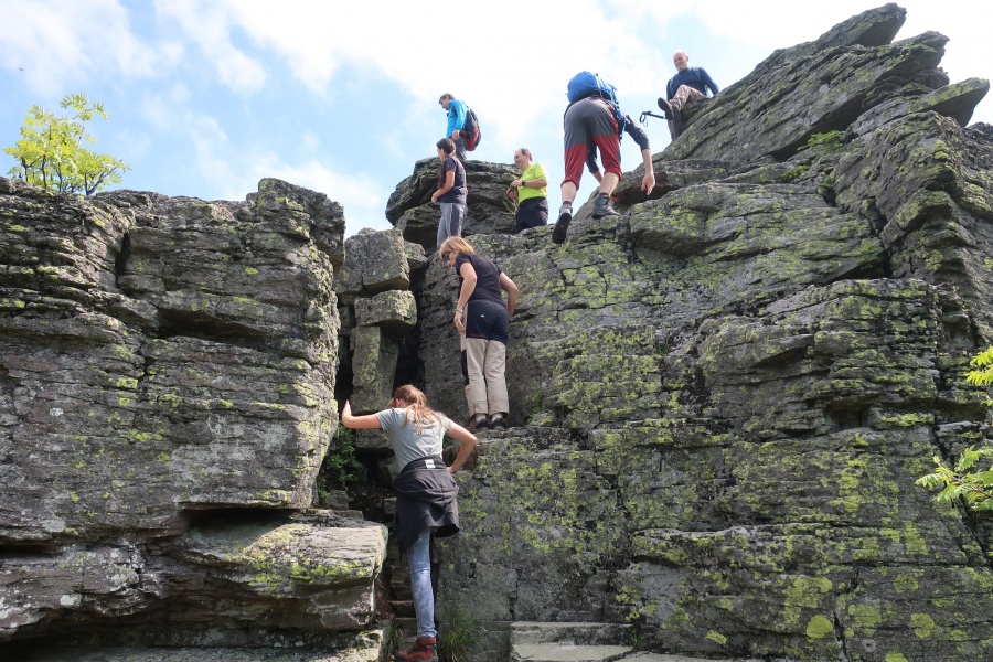 Druhá skupina sa vydala na vrchol z obce Ostrý grúň, cez Rúbaný vrch a Kláštorskú skalu (tu sa naše skupiny stretli) na vrchol. Z vrchol okolo Partizánskej chaty do cieľovej obce Kľak.