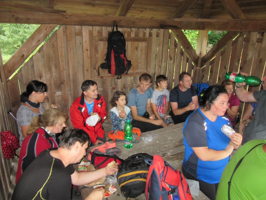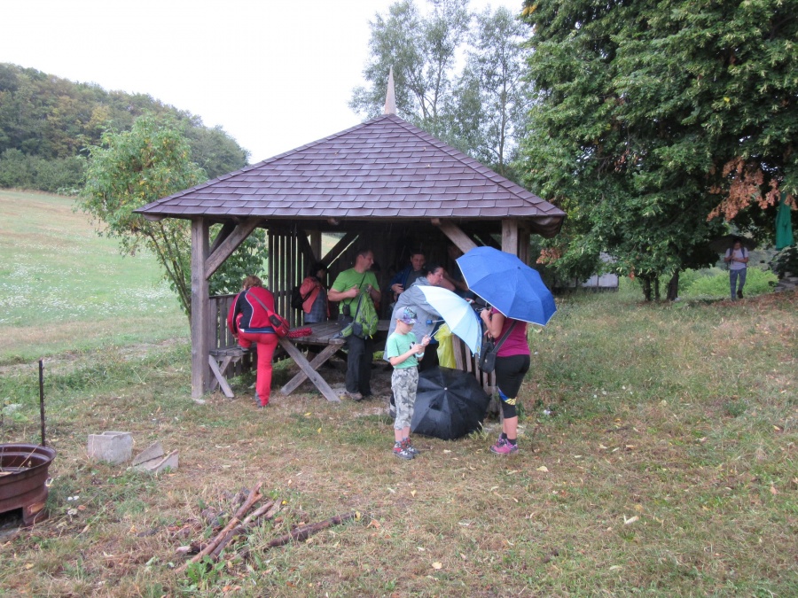 Na túto nedeľnú vychádzku sa nás nazbieralo toľko, že sme si museli objednať autobus. Autobus nás doviezol do Trenčianských Bohuslavíc k penziónu Žákovic. Majiteľ penziónu nám poradil miestny chodník, ktorým sme sa napojili na zelenou značený turistický chodník smerujúci k rozhľadni Hájnica. odkiaľ bol výhľad na hrad Beckov. Z rozhľadne to bolo už len 15 minút k zrúcanine románskeho kostola Haluzice, odkiaľ začínal náučný chodník cez Haluzickú tiesňavu. Trasa to bola nenáročná, bez problémov ju zvládli všetky vekové kategórie. Orientovať sa v tiesňave bolo jednoduché, vyšliapaným chodníčkom sme sa dostali k drevenému mostíku a po vybudovaných schodíkoch sme sa dostali hore von z tiesňavy. Z Haluzíc sme pokračovali asfaltkou cez obec Bošáca k osade Rolincova. V tomto úseku sa spustil intenzívny dážď, ktorý sme prečkali v altánku, pri odbočke k archeologickému nálezisku Hradisko. Zastávku sme využili na doplnenie energie a malé občerstvenie, hlavne dospeláci to potrebovali. Od altánku sme zišli žltou značeným chodníkom do Zemianského Podhradia.