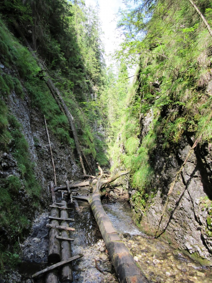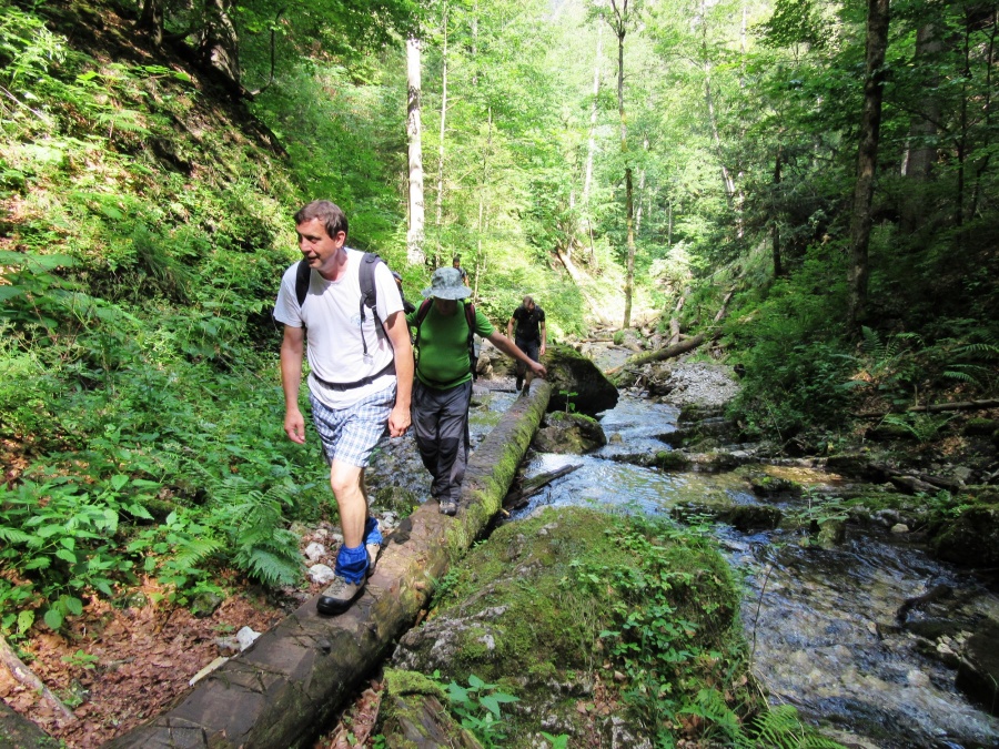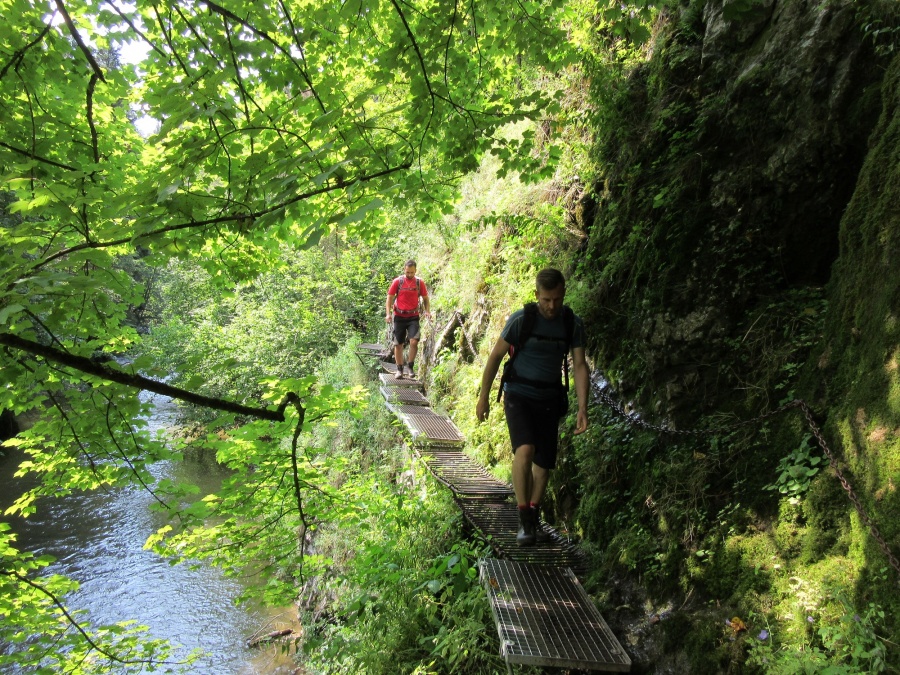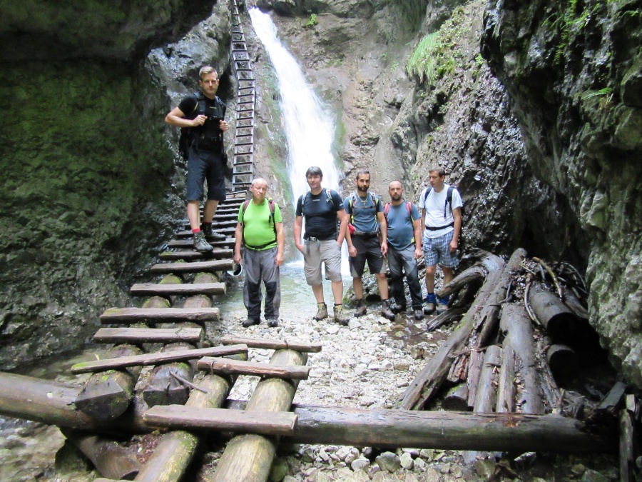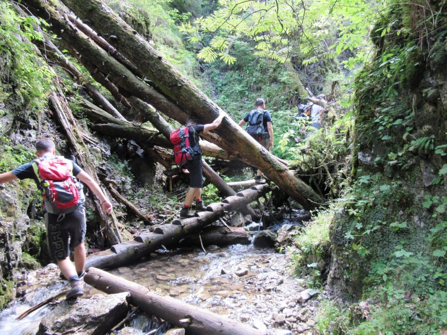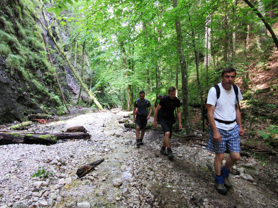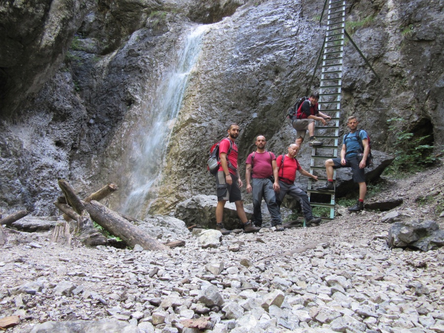 Záverečný deň sme pre stále hustú hmlu v Tatrách, odišli do Slovenského Raja. Po niekoľko ročnej prestávke sme išli zdolať tiesňavu Veľký Sokol. Tento výlet patrí medzi najatraktívnejšie a svojou dĺžkou najnáročnejšie v Slovenskom Raji. Na trasu sme vyrazili po zelenej značke z osady Píla do ústia tiesňavy z prechodom na žltú značku. Začiatok trasy viedol lesným chodníkom popri potoku s miernym prevýšením. Čoraz strmším stúpaním sme sa dostali do skalného zúženia doliny s názvom Kamenné vráta. Tu sa začala naozajstná roklina, toto bola vstupná brána do Veľkého Sokola. Odtiaľto, za pomoci drevených lávok a železných rebríkov sme sa dostali až na vrch na Glackú cestu. K autu na parkovisko sme zišli po červenej značke, so záverečným traverzom po žltej značke.