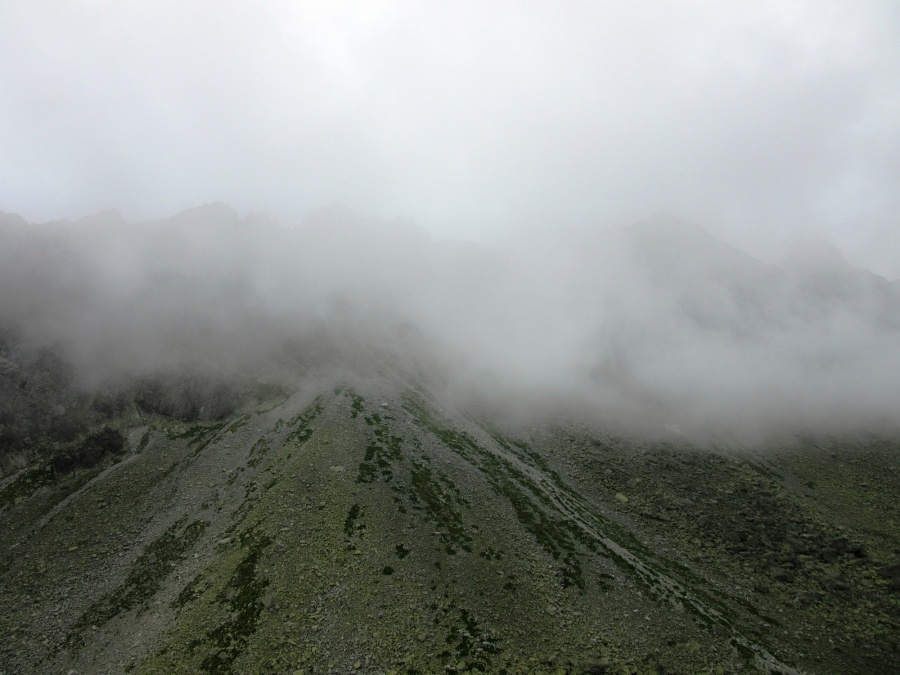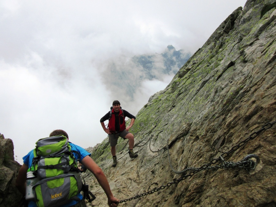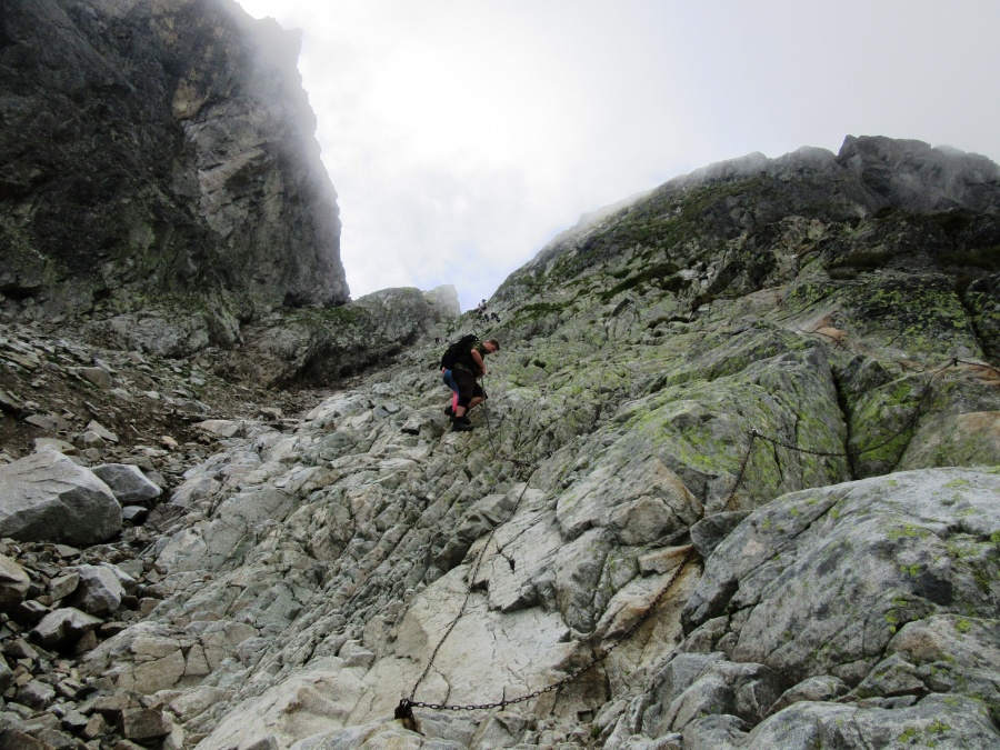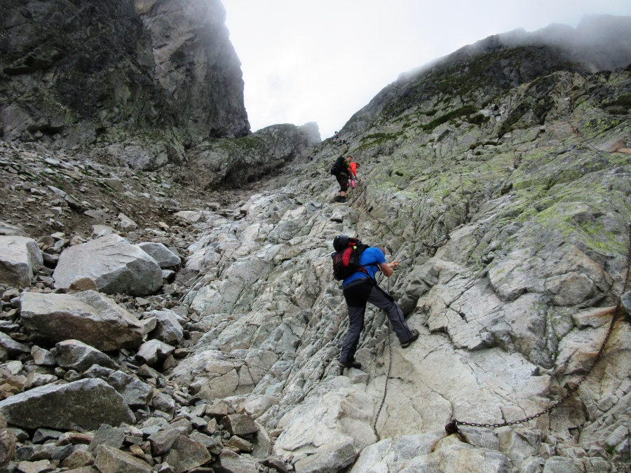 Druhou túrou vo Vysokých Tatrách mal byť za pomoci inštruktora VHT prechod z Veľkej Studenej doliny okolo Vareškového plesa do sedla s pokračovaním na Slavkovskú kopu a Slavkovský štít. Zo štítu sme chceli pokračovať po turistickej značke na Hrebienok. Pre hustú hmlu a silný vietor a krátkej porade na Zbojníckej chate, sme sa rozhodli pre prechod cez Priečne sedlo. Týmto sme využili možnosť otvorenia chodníka aj v protismere. Veľa turistov o tejto variante nevie a na výstup využívajú obidve reťazové cesty.