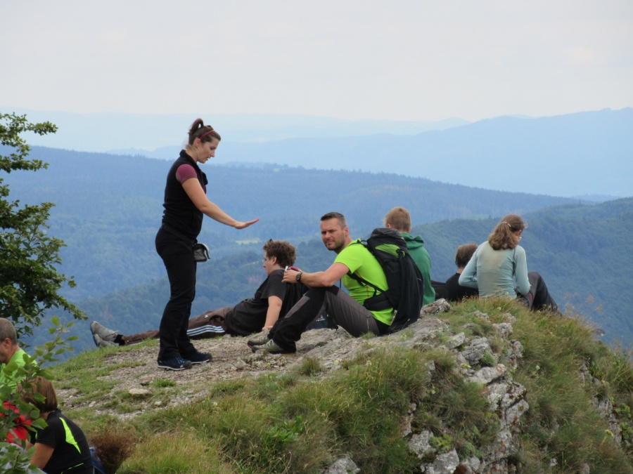 Našu trasu sme začali v sedle Malý Šturec. Zo sedla trasa pokračovala zvážnicou s miernym stúpaním po červenom turistickom chodníku (E8- cesta hrdinov SNP) smerom do Zalámanej doliny. Pri smerovníku Krásny kopec – rázcestie sme stúpali k Horskému hotelu Kráľova Studňa. Pri hoteli sme využili možnosť na oddych a občerstvenie. Odtiaľ sme pokračovali dlhým záverečným stúpaním po hrebeni na vrch Krížna (1574 m.n.m.), ktorý je tretím najvyšším vrchom v Národnom parku Veľká Fatra. Odmenou nám boli unikátne výhľady z hrebeňa do dolín a samotný atraktívny kruhový výhľad z Krížnej. Z tohto miesta sme už len klesali po modrej značke na Majerovu skalu. Majerova skala je prírodná pamiatka, ktorá nám ponúkla nádherné výhľady na Starohorské Vrchy, Starohorskú dolinu a časť hrebeňa Veľkej Fatry. Z Majerovej skaly sme strmo klesali lesnou cestou, z ktorej sa nám tiež ukázolo zopár pekných výhľadov. Cieľ dnešnej túry sme mali v dedinke Staré Hory, ktorá patrí k jednému zo známych pútnických miest s bohatou baníckou históriou.