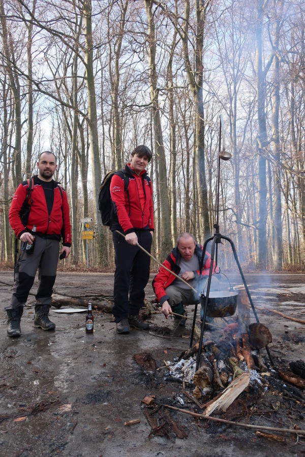 Ako tradične sme absolvovali trasu na 30 kilometrov. Z pohostinstva U draka sme vyrazili na trasu za príjemného a teplého počasia, ktoré nám vydržalo počas celého pochodu. Po červenej značke sme sa dostali do Klobouček a hneď za mostom odbočili k prvej kontrole U Zlatého jelena. Z kontroly sme pokračovali peknými lesnými chodníkmi po zelenej značke do obce Ždánice a popri Hvězdárne a planetáriu Oldřicha Kotíka do Lovčíc, kde po niekoľkých rokoch zrušili kontrolne stanovisko, na veľkú škodu všetkých účastníkov. V Lovčiciach pri obecnom úrade sme prešli na modrú značku a najstrmším výstupom vyšli ku smerovníku Vlčí jáma, ktorý sa nachádza na hrebeni Ždánického lesa. Hrebeňom sme pokračovali ku kontrole U Kříže. Po krátkom odpočinku pri varenom vínku a opekaní ,,buřtov,, sme miernym klesaním pokračovali až do cieľa v Bučoviciach.