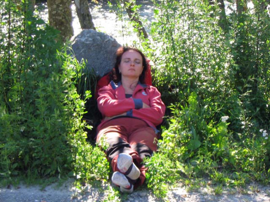Kým sme sa všetci zišli, tí najšikovnejší sa stihli opláchnuť v miestnej rieke a trošku si oddýchnuť. Veď nakoniec, mali sme aj byť z čoho unavení - prešli sme prevýšenie 2 100 metrov.