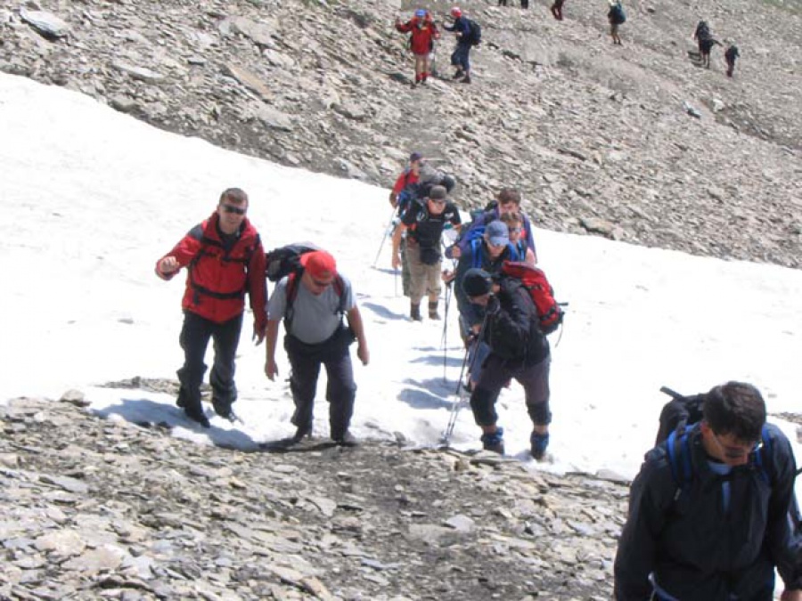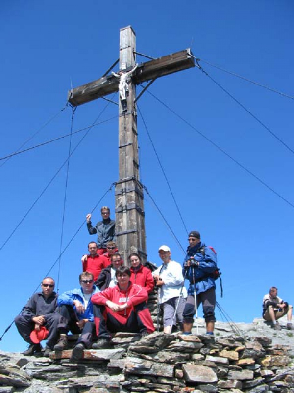 Po presune vlakom z Považskej Bystrice do Bratislavy, sme autobusom pokračovali do mestečka Matrei in Osttirol v národnom parku Hohe Tauern. Po nekonečných deviatich hodinách strávených v autobuse, sme konečne dorazili do cieľa. Po krátkych prípravách vyrážame o 6.00 hod. na túru. Prvé metre absolvujeme po asfaltovej ceste cez miestnu časť Prossegg. Svižným tempom sa po niekoľkých minútach dostávame na horský chodník. Postupne cez lúky a lesnými chodníkmi míňame poslednú civilizáciu a dostávame sa do horského terénu. Tu sa začala prejavovať únava na niektorých našich kamarátoch, spôsobená čiastočne aj z nepohodlného cestovania (HA HA HA, čo na to kondícia). Poslednú zastávku sme si dopriali asi 600 metrov pod vrcholom. Po krátkom občerstvení vyrážame na posledný úsek. Po piatich hodinách sa dostávame na vrchol (nezabudnime ani na oneskorencov, ktorí mali meškanie cca hodinu). Tu sa nám naskytol nádherný výhľad na čiastočne zasnežené okolité kopce. Prestávku na vrchole sme využili aj na to, aby sme obsah našich ruksakov presunuli do prázdnych žalúdkov. Ešte posledné vrcholové foto a rovnakou trasou schádzame naspäť. Po necelých štyroch hodinách zostupu, sme dorazili do cieľa nášho putovania.