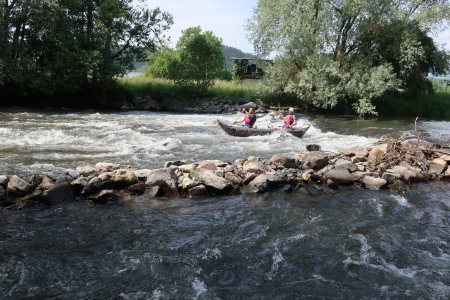 Po krátkom oboznámení sa začiatočníkov s ovládaním raftu, sme vyrazili na vodu. Pomyselnou štartovacou čiarou bola obec Nemecká tesne nad mostom. Hneď po štarte prvá perej preverila, či dávali dobrý pozor pri výklade. Prvá obec, ktorú sme minuli po trase bolo Brusno, kedysi so slávnou krčmou Jágerka, dnes už zatvorenou. Pred obcou Medzibrod sme si spravili krátku zastávku pri skale Kráľová, s ktorej sa dá pri optimálnej hladine rieky aj zaskákať. Občerstvovačku sme si spravili na vodáckom táborisku Mlynčok, lebo ako sa hovorí, kto splavuje Hron a nezastaví sa na Mlynčoku, ako keby ho ani nesplavoval. Niekoľkými menšími, alebo väčšími perejami, sme dorazili do cieľa prvého dňa pod mostom v Šálkovej.