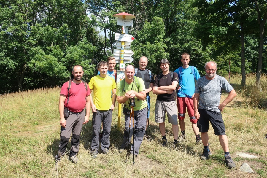 Z Medvedieho vrchu až na vrchol sme išli už len mierne zvlnenou hrebeňovkou. Na vrchole sme natrafili na niekoľko turistov, ktorých sme využili, aby nám spravili spoločné foto. Po malom občerstvení, sme sa pustili prudkým klesaním do Kováriec, cieľa našej dnešnej turistiky.