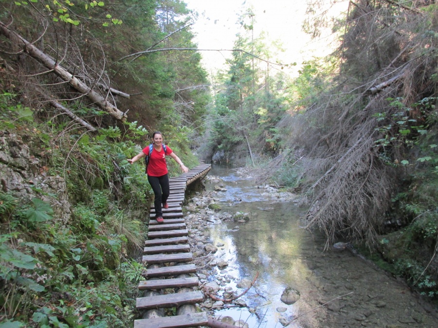 Zvyšné dva dni sa vytvorili menšie skupinky, ktoré sa rozptýlili po jednotlivých roklinách. Naša šesťčlenná sa najskôr vybrala do Prielomu Hornádu a na Tomášovský výhľad a posledný deň do rokliny Veľký sokol. Veľký Sokol je náročná okružná túra s dĺžkou 21 km a exponovaným výstupom cez tiesňavu, ktorý zabezpečujú rebríky, stúpadlá, reťaze a mostíky.