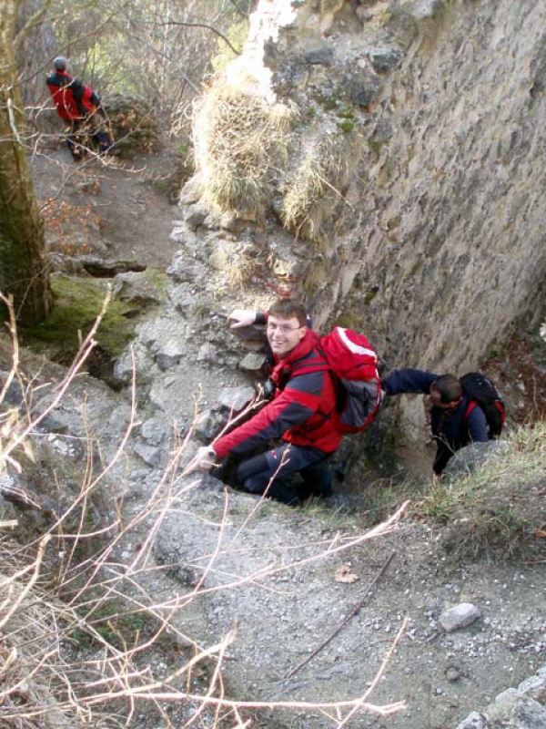 Na zašlú slávu hradných pánov sme si nostalgicky zaspomínali na zrúcanine hradu Hričov. Ako sme sa blížili na hrebeň Súľovských skál, pribúdalo snehu a pod vrcholom bola súvislá pokrývka. Na hrebeni však slnko urobilo svoje a sneh zmizol. Neobišli sme ani druhý hrad na trase – Súľovský. Sú to už pomaly, ale isto chátrajúce a možno aj pre návštevníkov nebezpečné zrúcaniny. Po červenej značke cez obec Súľov a Čierne potoky sme sa dostali do Vrchteplej, kde naša turistika končila.
