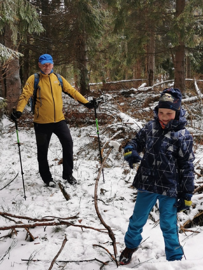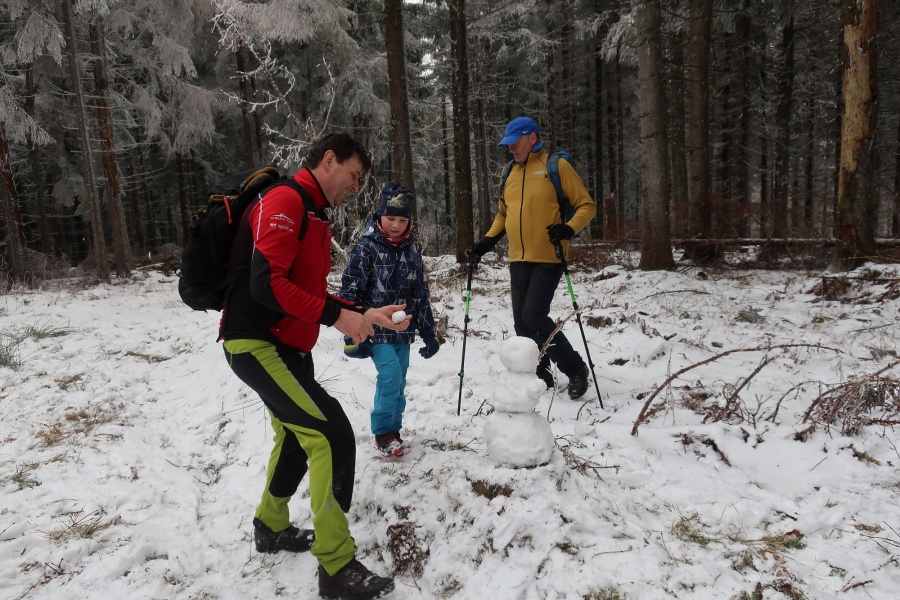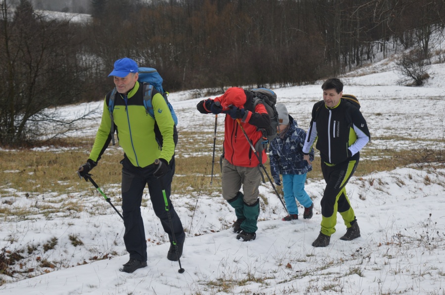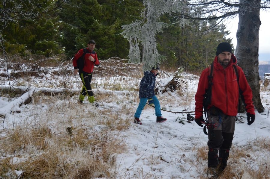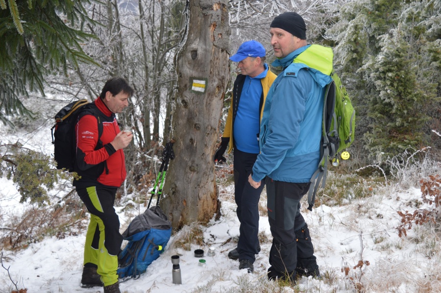Na trasu sme vyrazili z Bieleho Potoka miestna časť Huličarovci, kde sme si zaparkovali autá. Hneď za osadou sme vošli do terénu, kde sa držal poprašok snehu, ktorý napadol v predošlý deň. Na lúke nad osadou, pri smerovníku Poľany, sme opustili zelenou značený chodník a strmým stúpaním po žltej sme sa vydali na Pupov-západný vrchol. S pribúdajúcou nadmorskou výškou nám pribúdalo aj snehu, ktorý nám sťažoval pohyb. Vrchol bol pomerne zarastený a preto poskytoval len obmedzené výhľady. Asi 30 metrov pod vrcholom, sme odbočili na neznačený chodník, ktorý nás po hrebeni priviedol až na najvyšší bod Pupov s nadmorskou výškou 1 096 m, kde sme si postavili prvého snehuliaka tohto ročnej zimy. Tou istou trasou sme sa opäť vrátili na značkovaný chodník a strmo klesli do osady Jánošíkovci (rodisko legendárneho zbojníckeho kapitána Juraja Jánošíka). Za osadou sme sa vrátili na zelenou značený chodník, ktorým sme sa vrátili k autám.