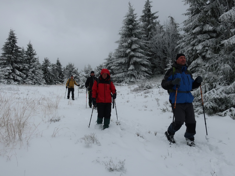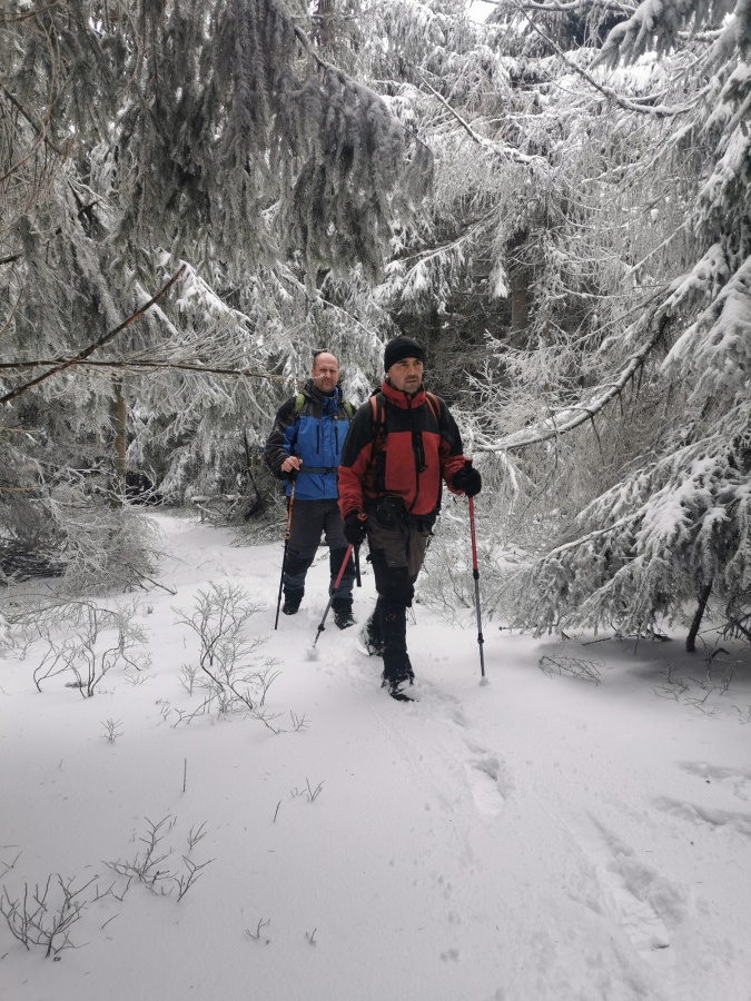 Tento raz sme sa vybrali na najvyšší bod Oravskej Magury - Minčol (1395,9 m) v tesnom susedstve známeho lyžiarskeho strediska nad Dolným Kubínom. Keďže nás bolo do jedného auta, trasu sme si zvolili tak, aby začiatok aj koniec trasy bol v jednom bode, presnejšie konečná autobusu v Zázrivej časť Kozinská. Neznačeným chodníkom cez Dubovské lúky, sme sa dostali k smerovníku Hlásna skalka, odkiaľ sme pokračovali po červenej značke (Cesta hrdinov SNP) až na samotný vrchol. Smerovník nám oznamoval, že na vrchol je to 1,5 hodiny s prevýšením 460 metrov. Hneď po vnorení sa do lesa, sme pochopili, že to bude trvať trošku dlhšie. Výška snehu (miestami sme sa zabárali až po kolená) nám sťažovala výstup, ale aj tak okolo dvanástej sme stáli na Minčole. Fúkal silný studený vietor a tak sme spravili len pár fotiek a pokračovali smer Kubínska hoľa, kde sme stretali malé skupinky skialpinistov. Škoda, že nám neboli dopriate výhľady, ledva sme dovideli na Veľký Choča a Roháče sme videli len v jemných náznakoch. Z Minčola sme tentoraz schádzali modrou značkou smerom na Visiľovskú hoľu. Bol to rýchly, nenáročný zostup a po chvíli sme stáli na vrchole lyžiarskeho strediska SKI Zábava v Hruštíne. Kúsok za strediskom sme sa odpojili z modrej značky na žltú, ktorá pokračovala až do Zázrivej. Chodník viedol prevažne lesom s množstvom vyjazdených koľají plných vody a popadanými stromami, preto sme tieto miesta museli pracne obchádzať, ale zato sa nám konečne ukázali výhľady na okolité vrchy.