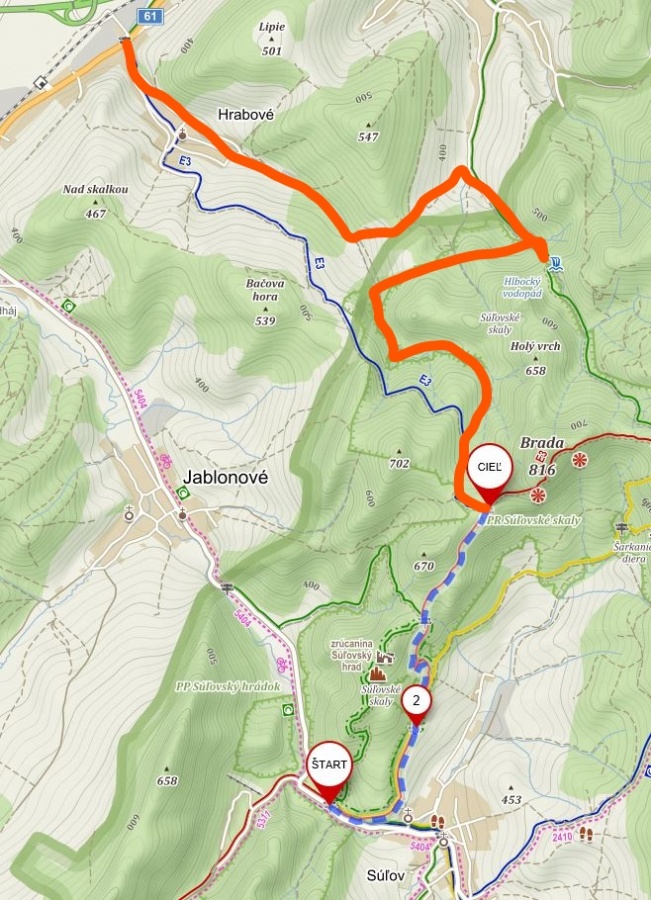 Turistickú trasu sme začali z parkoviska pod hradom. Značeným chodníkom sme prišli na Lúku pri kamennom hríbe, odkiaľ sme pokračovali do Sedla pod bradou 660 m n. m a lesným chodníkom na Lúku pod Súľovským hradom, kde sme si založili oheň a opiekli slaninu a špekáčiky. Od opekačky nás neodradilo ani začínajúce sneženie, práve naopak naša omladina sa vybláznila do sýtosti. Po občerstvení sme pokračovali na Hlbocký vodopád 460 m n. m. v lokalite Hlboké pri Bytči. Po výdatných dažďoch v Národnej prírodnej rezervácii Súľovské skaly sa naskytol oku lahodiaci pohľad na 14 m vysoký vodopád. Naplánovanú turistickú trasu sme ukončili v Hrabovom (mestská časť Bytče) , kde sme si pochutnali na fazuľovici, domácich šiškách a makových pupákoch, ktoré zabezpečil náš kamarát Marcel.