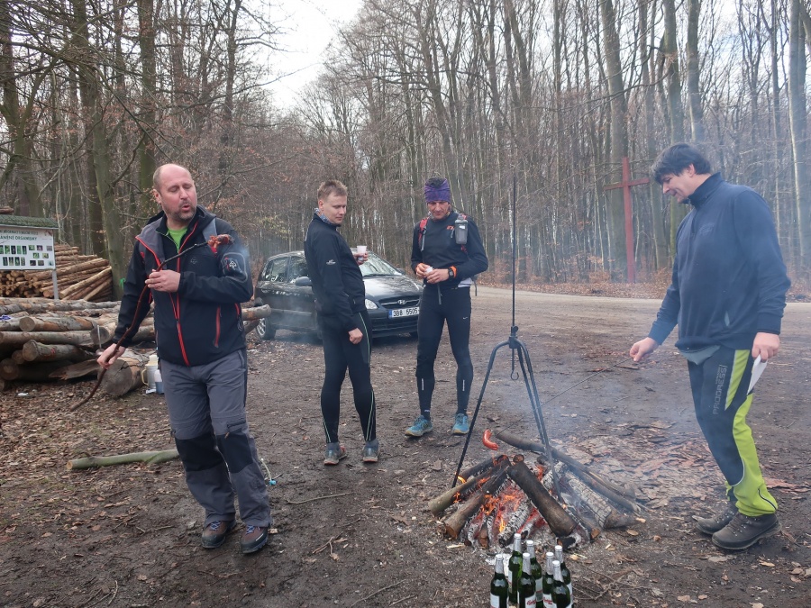 Ranný budíček sme si stanovili na 6.00 hod., aj tak už niektorí pochodovali dve hodiny po ubytovni. Pred štartom, ktorý bol v Bystre u Draka, sme si dali teplú kávičku a po zaregistrovaní sa na štarte, sme vyrazili po červenej značke na trasu, ktorá nás doviedla do Ždánických lesov. Na naše prekvapenie prvá kontrola U Zlatého jelena bola zrušená, lebo domáci nemali dostatočné množstvo usporiadateľov. Pohodovým klesaním sme sa dostali do mestečka Ždánice, kde si niektorí spravili krátku prestávku na občerstvenie a niektorí na zalepenie otlakov na nohách. Cez Lovčice, kde tiež pred niekoľkými rokmi bola kontrola, sme sa dostali na Vlčí jámy s pokračovaním na jedinú kontrolu na trase ,,U kříže,, Tu sme si opiekli výbornú domácu klobásu a posilnili sa vareným vínkom. Odtiaľto sme pokračovali už len dolu kopcom (ak nerátame krátky výstup k DDM) až do cieľa v Bučoviciach.