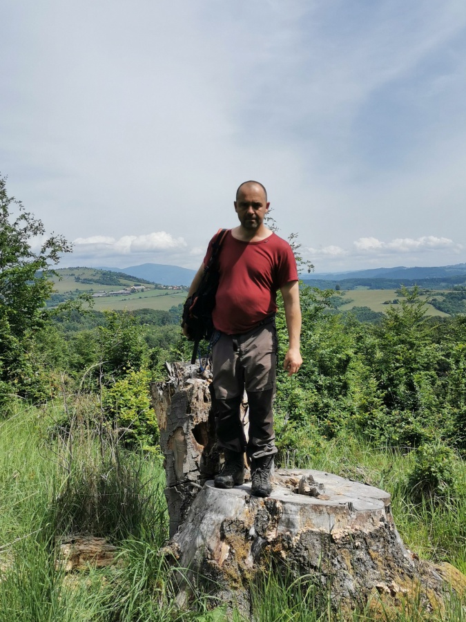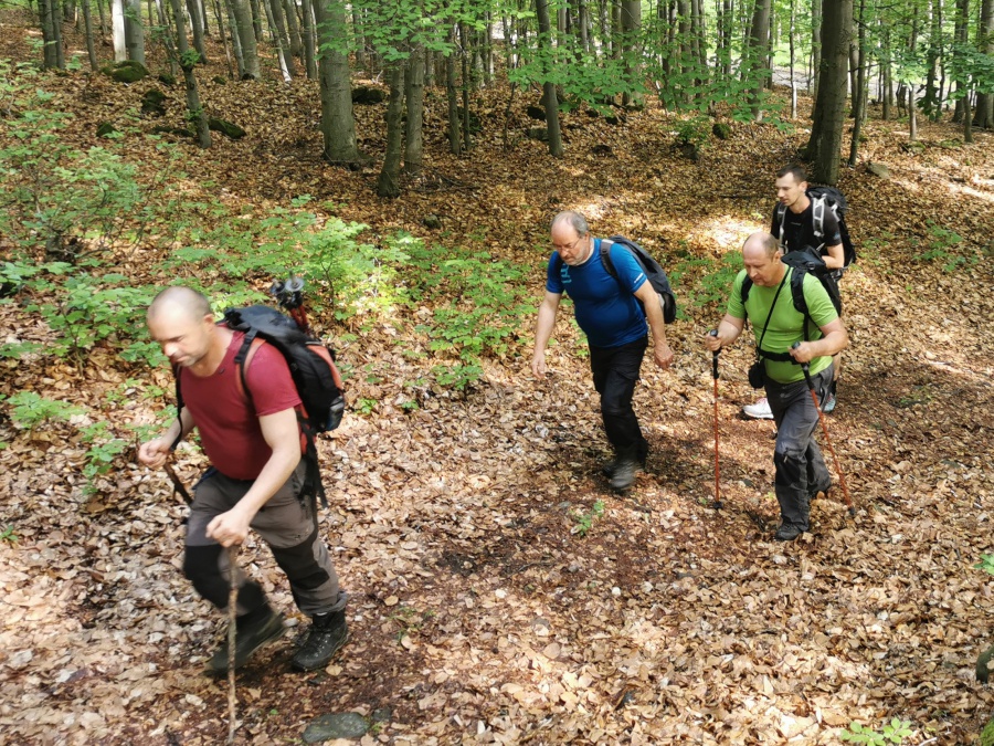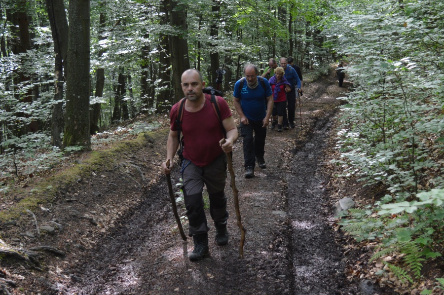 Výstup ,,po zelenej značke,, sme začínali za obcou Tuhár, kde sme si na odbočke z hlavnej cesty na lesnú pohodlne zaparkovali autá. Úvodné metre viedli miernym stúpaním až po turistický prístrešok nad obcou, na ktorom aktívne pracovali miestny turisti. Od prístrešku bolo stúpanie strmšie a neskôr sa podklad zmenil na skalnato – hlinený z nepríjemnými šmykľavými úsekmi, ktorými sme sa dostali k jaskyni pod Bralcami (jaskyňa je neprístupná pre verejnosť). Krátkou serpentínou sme obišli vchod do jaskyne a vyšli k vrcholu Bralo (802 m.n.m.). Odtiaľ to bol už len kúsok k smerovníku Sedlo pod Bralcami. V tomto úseku si mnohý ani nevšimli, že prešli okolo metrového (možno aj viac, ale predsa nie sme rybári) hada. V sedle sme odbočili smer Vrchovina a po 300 metroch bola odbočka, ktorá hlásala, že na vrchol Bralce (817 m.n.m.) je to už len 10 minút. Na vrcholovej lúke sa nachádzala útulňa, ktorá si toho asi veľmi pamätala, dvojkríž a schránka s vrcholovou knihou. Naspäť sme schádzali rovnakou trasou.