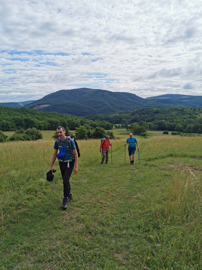 Na trasu sme vyrazili zo Šiatorskej Bukoviny od štátnej hranice. Hneď na úvod sme po žltej značke prechádzali cez potok po nie moc bezpečnej lávke a popod most bývalej železnice, kde niektorý pocítil aj tvrdý pád pri preskakovaní kaluží, ktoré sa tam tvorili po predchádzajúcom celodennom daždi. Odtiaľ miernym stúpaním po lúkach popri štátnej hranici s Maďarskom sme vystúpali k smerovníku Mižera, tu sme sa napojili na červenú značku. Po niekoľkých minútach sa chodník stočil prudko doprava a pomerne strmým stúpaním sme prišli k miestu, kde bol kríž, prameň a malé posedenie. Z tohto miesta to už bolo len na skok do sedla Karanč, ktorý je priamo na hranici s Maďarskom. Odtiaľ, stále po hranici, nás čakalo záverečné nepríjemné stúpanie až na samotný vrchol, kde bola rozhľadňa, ktorá sa nachádzala na maďarskej strane pár metrov od štátnej hranice. Rozhľadňa mala dve terasy (prvá nezastrešená, druhá zastrešená), z vrchnej bol pekný 360° kruhový výhľad. Po zaslúženej prestávke sme sa rovnakou trasou vrátili naspäť k autu a presunuli sa do obce Obručná.
