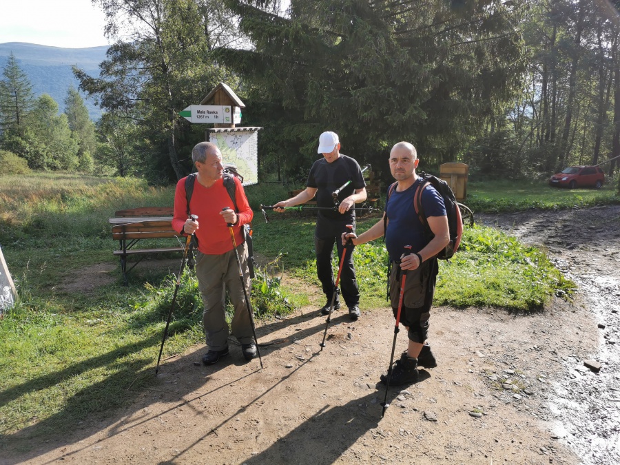 Na Kremenec sme už išli z Novej Sedlice, ale aj ako súčasť celého hrebeňa z Medzilaboriec do Novej Sedlice. Preto sme tento krát zvolili variantu z poľskej strany. Autom sme sa doviezli na parkovisko Przełęcz Wyżniańska (parkovisko bolo spoplatnené 8 PLN a vstup do národného parku 7 PLN na osobu). Z parkoviska sme začínali výstup po zelenej značke. Značka nás najskôr viedla chodníkom po lúke až k turistickej chate Bacówka PTTK Pod Mala Rawka. Od chaty strmo hustým bukovým lesom a asi v polovici kopca začínali schody, ktoré boli vybudované až na vrchol Malej Rawky. Z vrcholu boli krásne kruhové výhľady, pre ktoré sa oplatí absolvovať výstup na tento kopec. My sme však pokračovali ďalej smerom na Wielku Rawku. Vrchol Wielkej Rawky je pretiahnutý a pomerne plochý, z diaľky pôsobí ako stolová hora. Ani netreba pripomínať, že počas presunu medzi Rawkami, sme mali výhľady na všetky svetové strany. Od smerovníka sme klesli do sedla (cca 200 metrov sme museli zísť) a znova vystúpali na vrchol Kremenca, ktorý je najvyšším bodom Bukovských vrchov. Zároveň je tu aj hranica troch susediacich štátov Slovenska, Poľska a Ukrajiny. Na vrchole nám robili spoločnosť ukrajinský pohraničníci. Na spiatočnej ceste k autu sme museli opäť absolvovať výstup na Wielku Rawku.