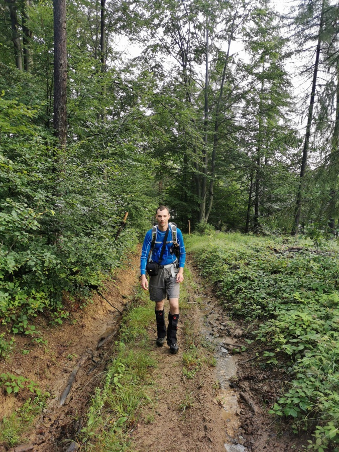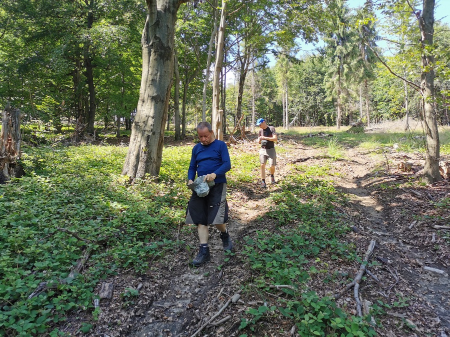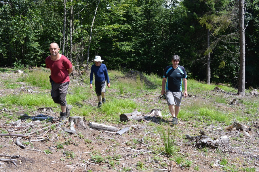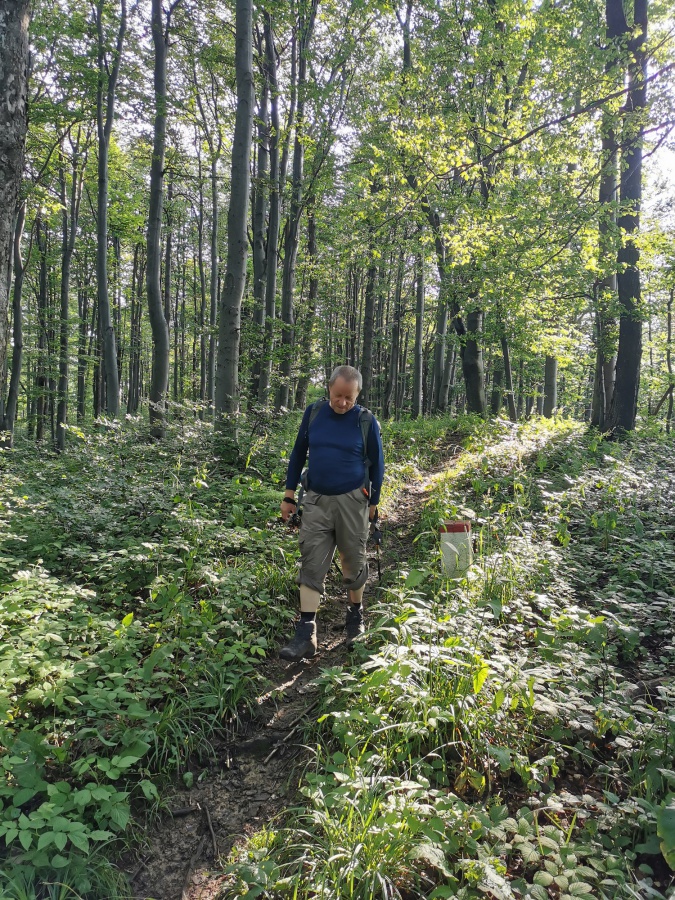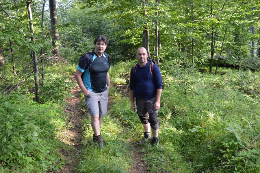 Autom sme sa doviezli na provizórne parkovisko pred obcou Smolnik, hneď po prekročení železničného priecestia. Na začiatku cesty bol zákaz vjazdu pre motorové vozidlá. Pohodlnou spevnenou cestou sme prišli k smerovníku za bývalou obcou Zubeňsko a už po modrej značke pokračovali na výstup, kde popri chodníku boli vystavané posedy pre poľovníkov. Po niekoľkých minútach sme narazili na jasnú poľnú cestu, ktorá stúpala k hraničnému hrebeňu. Pri rozhodovaní bolo treba dávať pozor na značku, lebo cesty sa na viacerých miestach rozdeľovali. Po dosiahnutí hraničného hrebeňa už nebol problém s orientáciou, lebo chodník bol prehľadný a dobre značený. Na vrchol Vysokého Grúňa sme sa dostali po červeno značenom chodníku. Napriek značnej nadmorskej výške nám vrchol neponúkol kvôli hustému porastu ucelenejšie výhľady. Rovnakou trasou sme prišli k autu a presunuli sa do obce Jedlinka a ešte v ten istý deň vyšli na Smilniansky vrch. Na vrchol neviedla žiadna turistická značka, preto sme celý výstup absolvovali podľa navigácie. Na samotný vrchol viedla prehľadná široká zvážnica, len záverečný úsek na vrchol sme sa predierali hustým zarasteným porastom. Vrchol je označený triangulačným stĺpikom, ktorý sme označili ceduľkou s názvom vrcholu a nadmorskou výškou.