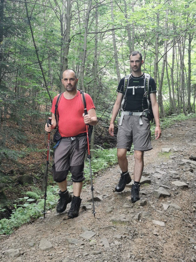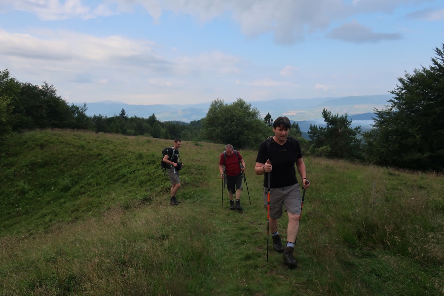 Keďže sme si toho na jeden deň veľa naplánovali, preto sme sa rozhodli pre orientačne jednoduchú a výstupovo rýchlu trasu na najvyšší vrch Minčol v pohorí Čergov z ústia Kalinovského potoka. Táto trasa bola značená ako náučný chodník červenej farby. Úvodná časť viedla po spevnenej ceste k turistickému prístrešku s oznamovacou tabuľou a parkovisku, ktoré zrejme poznajú len miestny, lebo bolo umiestnené až po značke oznamujúcej zákaz vjazdu. Odtiaľto chodník viedol po lesných zvážniciach až k útulni Pod Minčolom. Bolo to príjemné miesto s posedením a ohniskom na opekanie, doplnené peknou studničkou pripomínajúcou jazierko, len ryby chýbali. Od útulne strmou lúkou sme sa dostali na lúčnatý hrebeň s krížom, kde sme namiesto turistov stretli len zberačov čučoriedok. Tu sme sa stočili doľava a miernym stúpaním, sme sa dostali na neďaleký vrchol. Samotný vrchol sa nedá prehliadnuť vďaka veľkému betónovému pylónu. Samotný vrchol nám poskytol nádherné výhľady po okolí. Naspäť sme išli po vrcholovom hrebeni až k smerovníku Lazy a popri útulni k zaparkovanému autu pri ústi Kalinovského potoka.
