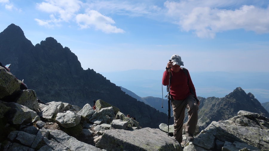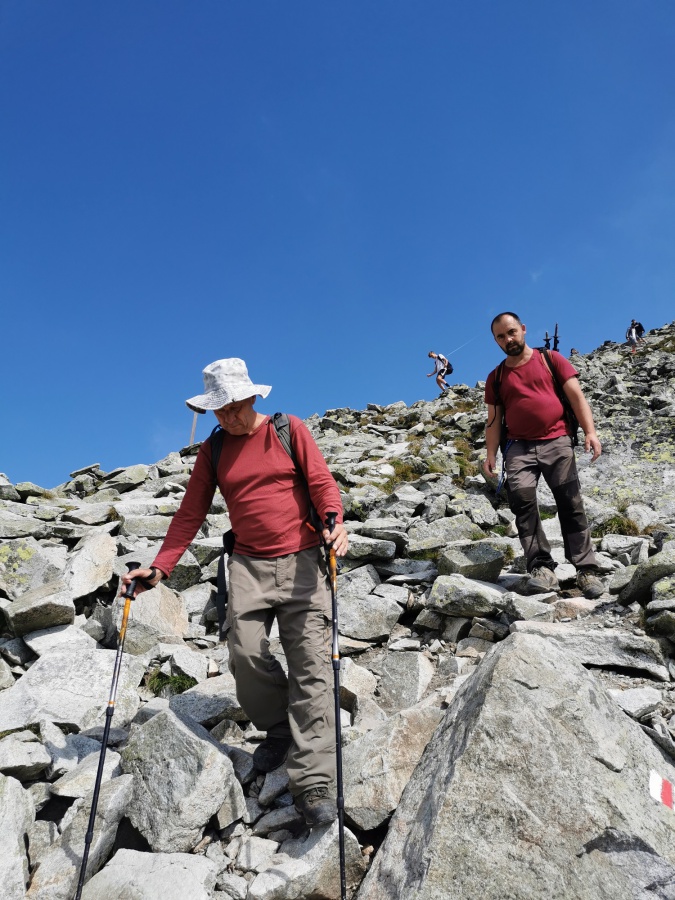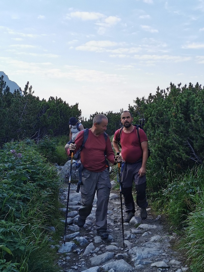 Chceli sme sa vyhnúť návalu turistov, ktorí už niekoľko dní okupujú jeden z najobľúbenejších turistických výstupov v Tatrách na vrchol Rysy, preto sme z domu vyrážali pred štvrtou hodinou. Na naše zdesenie parkovisko na Popradskom plese už bolo skoro plne obsadené. Po zaplatení parkovného, sme vyrazili po asfaltovej ceste na Popradské pleso. Keďže sme mali ešte dosť síl a nepotrebovali sme oddych, pokračovali sme miernym stúpaním na rázcestie nad Žabím potokom. To už sme postupovali výraznejším stúpaním, nadmorskú výšku sme naberali aj pomocou serpentín. Výstup na Chatu pod Rysmi bol dlhý, ale nie nudný. Kúsok nad Žabím plesom nás čakal exponovaný úsek istený reťazami, kramľami a kovovými roštmi. Po krátkom občerstvení a oddychu na chate sme pokračovali do sedla Váhy a odtiaľ na samotný vrchol Rysy. Tam, okrem krásnej panorámy na končiare Vysokých a Západných Tatier, nás čakali davy turistov, prevažne poľsky hovoriacich. Po krátkej prestávke na vrchole sme zišli na chatu, kde sme si dopriali teplú polievku a ako správni chlapi jedno dobre vychladené pivo. Potom nás čakal už len zostup, s malým zdržaním na reťaziach, k autu na parkovisku.