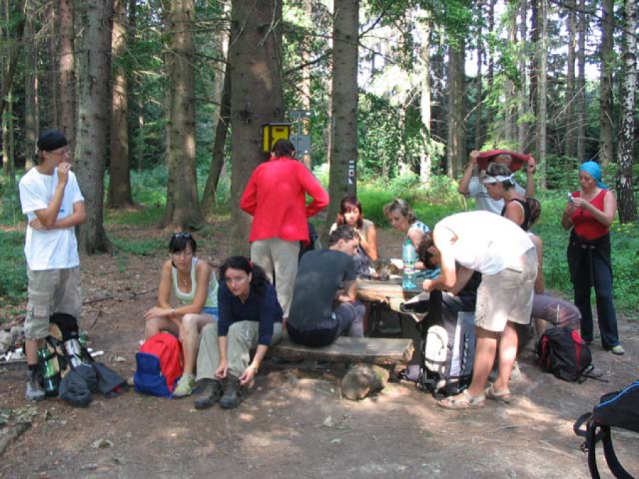 Prezentácia účastníkov bola pri radnici v Zlíne, odkiaľ sme sa vlakom presunuli do obce Lípa nad Dřevnicí. O deviatej hodine za teplého a slnečného počasia vyrážame po turisticky značených chodníkoch na trasu. Postupne cez Drdol, Pod Slavnickým kopcem, Spletený vrch a Klokočí sa dostávame na najvyšší bod pochodu vrch Doubrava (676 m.n.m.), kde sa nám naskytol nádherný pohľad na okolie z miestnej rozhľadne. Polčas pochodu bol v mestečku Slavičín. Po ubytovaní a sprche (nie všetci stihli prísť pred pravou letnou búrkou do cieľa, tí mali sprchu zadarmo) sa vydávame na príjemné posedenie spojené s večerou do Zámockej reštaurácie.