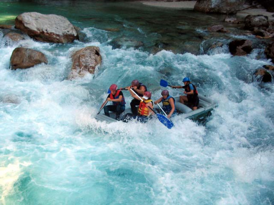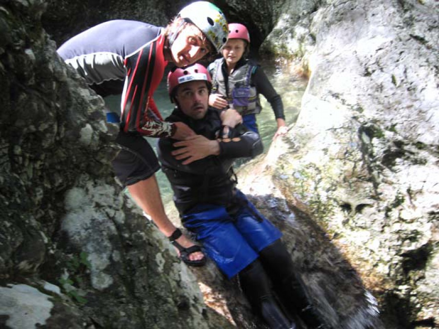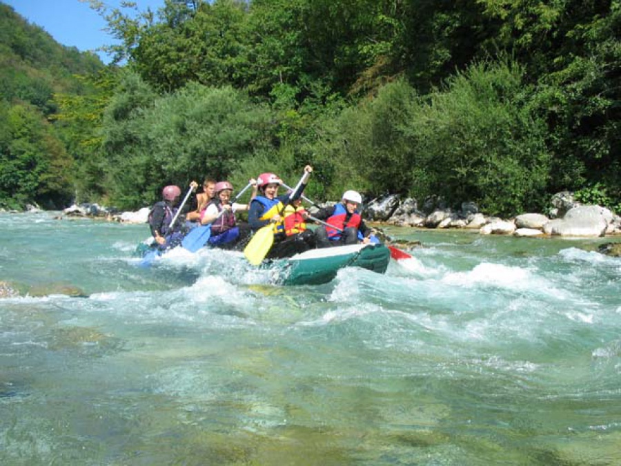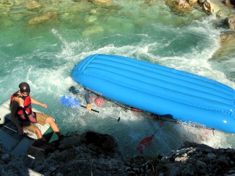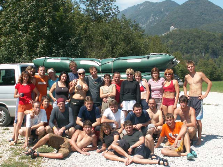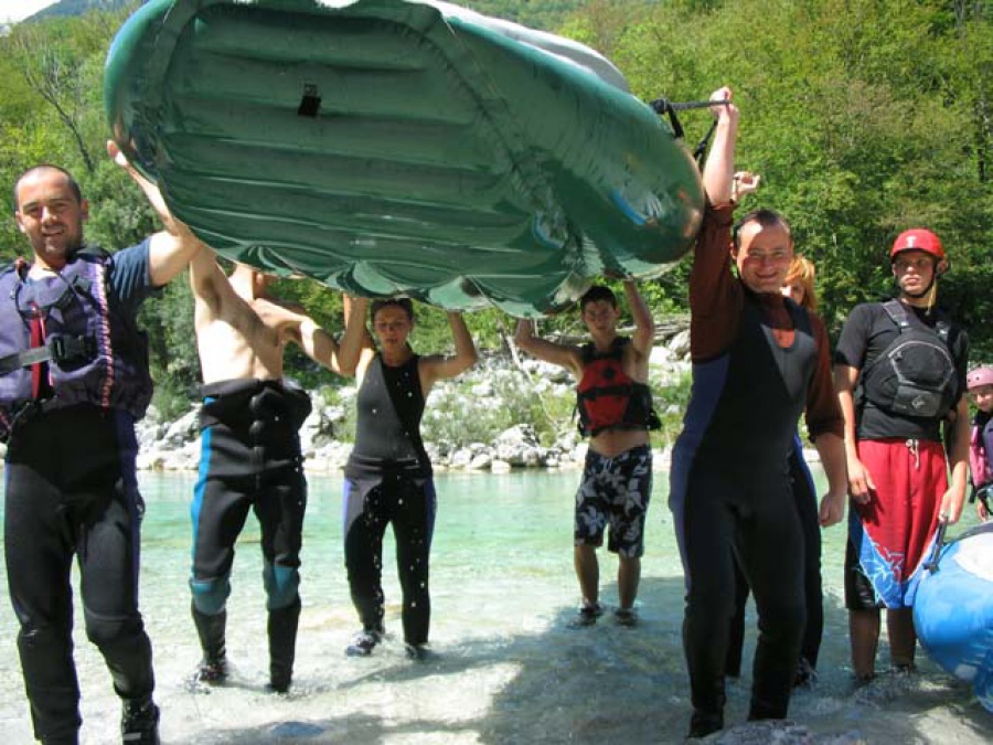 Po dvoch dňoch zdolávania peších túr sa vydávame na vodu. Absolvovali sme rafting na hornom ľahšom úseku rieky Soča. Rafting bol spestrený skokmi zo skál a mostov, až do výšky 14 metrov. Druhý deň na vode bol vyčlenený pre kaňoning na potoku Sušec z množstvom vodopádov, tobogánov a skokov do vody. Nezabudnuteľné boli dva úseky s názvami Čierna diera a Raketa. Po troch hodinách šantenia sme sa rozhodli pre pizzu v dedinke Žaga. Odtiaľ, na obhliadku vodopádu Boka, ktorý má výšku 106 metrov. Traja členovia našej početnej skupiny absolvovali kaňoning so zlaňovaním množstva vodopádov na rieke Predelica. Tretí deň bol na programe spodný obtiažnejší úsek rieky Soča. Tu sme si vyskúšali množstvo dobrovoľného aj nedobrovoľného kúpania v "termálnej" vode s teplotov 6 °C. Ukončenie splavovania bolo pri Napoleonovom moste v dedine Kobarid.