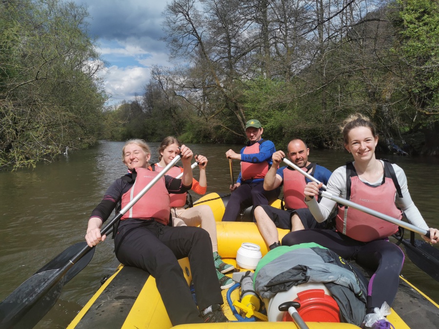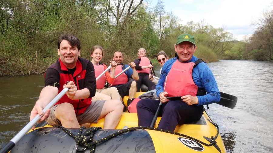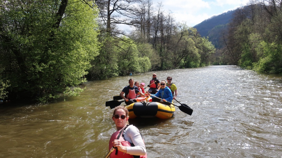 Hron preteká malebnou horehronskou prírodou a vodáci sú neustále obklopení krásnou prírodou a horehronskou scenériou. Hron patrí medzi najvyhľadávanejšie vodácke trasy. Dobre sa splavuje, v podstate žiadne prenášania ani veslovania a s dostatok táborísk. Aj pre nás bol Hron ideálnou voľbou, keď sme si chceli užiť voľný čas s partiou priateľov na vode. Ako vždy, aj tento rok sme si celý pobyt vybavovali cez nášho kamaráta Miša Rybu. Jediný rozdiel bol v tom, že sme uprednostnili ubytovanie v motoreste v Nemeckej a nie na kaštieli. V prvomájové ráno sme si osviežili, kde sa nachádzajú nebezpečné miesta a dva rafty (jeden rodinný a druhý plný nováčikov) sme vyrazili na vodu z prístaviska nad mostom v Nemeckej. Pohodu a dobrú náladu nám nepokazili ani proti pandemické opatrenia. Po preplávaní Brusna a rýchlokurzu pre nováčkov, sme ich postupne menili pri kormidle. Zabraní do splavu, sme rýchlo minuli Medzibrod a lodenicu Mlynčok. Aj keď sa hovorí, že sa nezastaví na Mlynčoku, ako keby ani nesplavoval Hron. Ale prísne opatrenia nedovoľovali podávať nápoje a ani stravu. Po prenesení raftov pod hať v Šálkovej, sme pokračovali prejazdom Banskej Bystrice a splav zakončili v obci Vlkanová pri reštaurácii a kempe Fort Geronimo.
