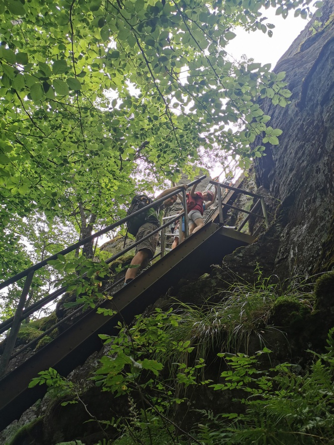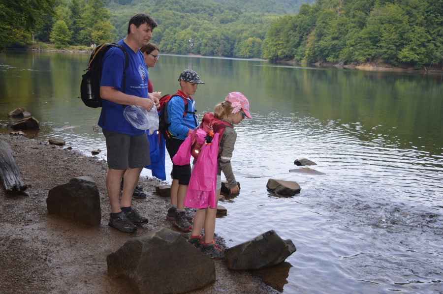 Pokračovaním zájazdu na východe Slovenska bol výstup na Snínsky kameň. Začínali sme na parkovisku a po 10 minútach dorazili k prírodnému jazeru Morské oko. Jazero lemovali husté bukové lesy a v strede jazera bol postavený pekný kaštielik. Po opustení asfaltky, lemujúcej Morské oko, sme pokračovali relatívne prudkým stúpaním do sedla Tri table. Po krátkom odpočinku v sedle, sme vyrazili pozvoľným stúpaním po hrebeni až na Snínsky kameň. Smerovník Sninský kameň bol umiestnený v lese, preto keď sme sa chceli pokochať výhľadmi, bolo nutné prejsť okolo stien Veľkého Sninského kameňa a následne vystúpať po rebríku na vrcholovú plošinu. Z vrcholu bol krásny výhľad na všetky svetové strany. Podľa domácich za výnimočne optimálnych podmienok je možné odtiaľto vidieť dokonca Tatry vzdialené 150 km (najmä v zime). Z vrcholu, niektorí pokračovali po červenej značke cez Nežabec, Strihovskú poľanu a Fedkov a zvyšok skupiny rovnakou trasou cez informačné centrum Rybárka - výstava zvierat žijúcich v okolí jazera na parkovisko, kde na nás čakal autobus.
