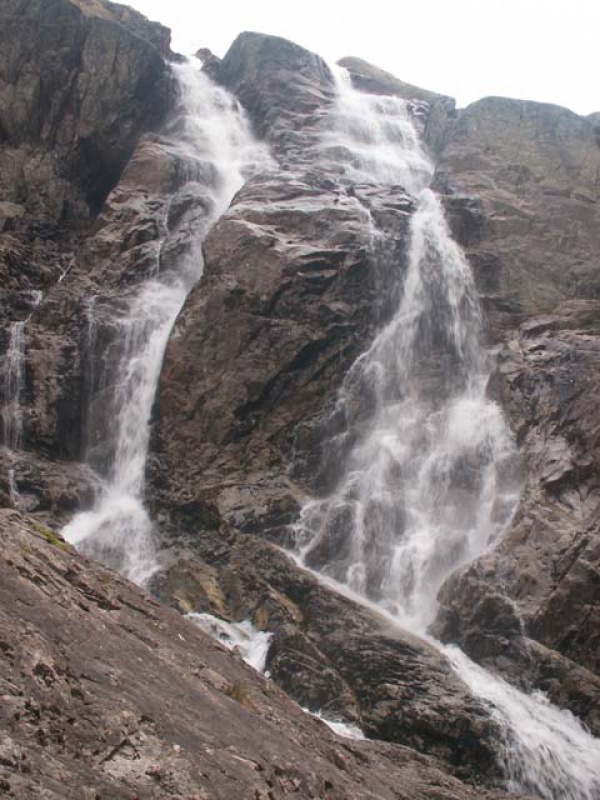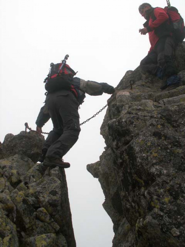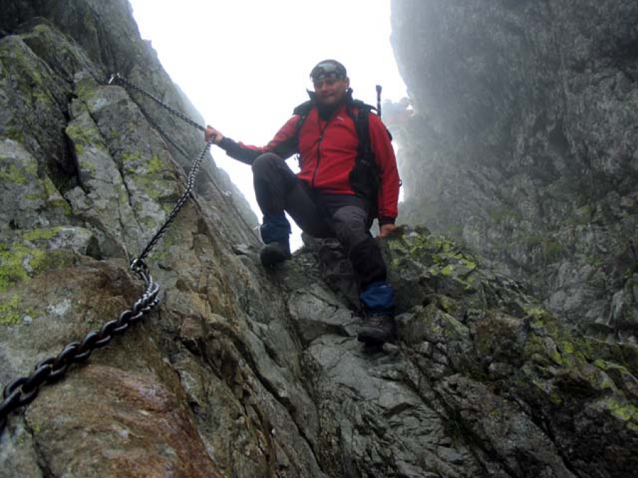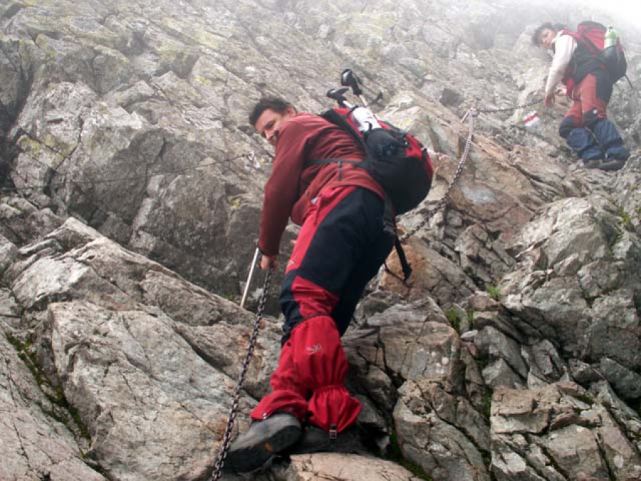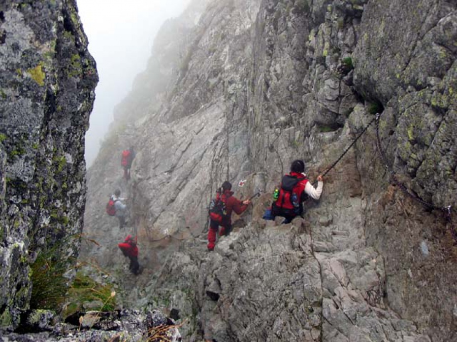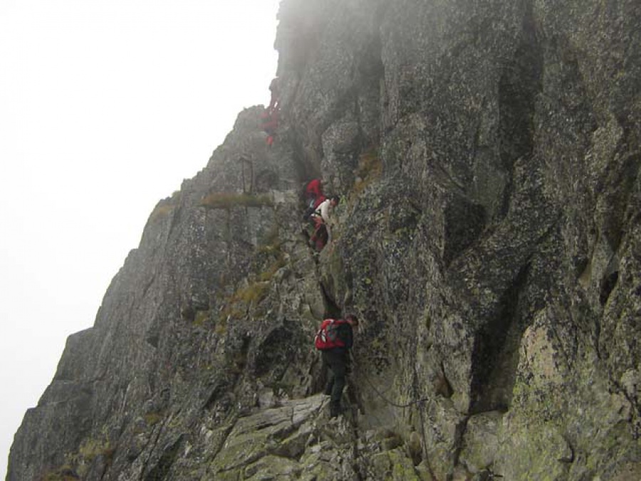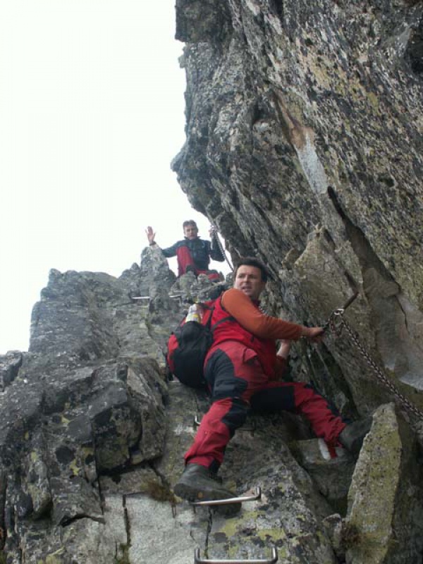 Cestou na hraničný priechod Lysá Poľana neustále pršalo, ale našťastie to bol posledný dážď počas dňa. Zdolávanie túry začalo o 6.00 h z parkoviska na poľskej strane. Spočiatku ideme po asfaltovej ceste, až neskôr sa dostávame na horský chodník. Po chvíli počujeme hukot vody, aj keď pre hmlu toho moc nevidieť. Tu sa pred nami vynoril krásny vodopád "Siklawa". Po krátkom občerstvení a prvých fotografiách postupujeme dolinou Pieciu Stawow Polskych do sedla Záwrat (2158,8 m.n.m.). Trochu oddychu a vyrážame v ústrety veľkému dobrodružstvu. Hneď na začiatku na nás čakajú prvé zaisťovacie pomôcky, reťaze a neskôr aj kramle a rebríky. Míňame Malý Kozí Wierch (2226 m.n.m.). Po prekonaní sedla Kozia Przelacz (2137 m.n.m.) sa exponovanejším terénom dostávame na najvyšší bod našej túry Kozí Wierch ( 2291,2 m.n.m.). Odtiaľ sa nám naskytol nádherný výhľad na Vysoké Tatry a plesá pod nami (miestami nám vo výhľadoch bránila hmla, ktorá nás prenasledovala celý deň). Po načerpaní síl sa vydávame na ďalšiu cestu cez hrebeň Granáty a Skrajny vrch, ďalej pokračuje Wielka a Mala Buczynowa. To už bolo len na skok do Krzyžneho sedla. Tu sme si spravili najdlhšiu prestávku v našom putovaní. Myslím si, že sme potrebovali načerpať posledné nie len fyzické, ale aj psychické sily. Po nepríjemnom zostupe sa dostávame na chatu, kde sme si dopriali teplú kávičku a chladené pivo.