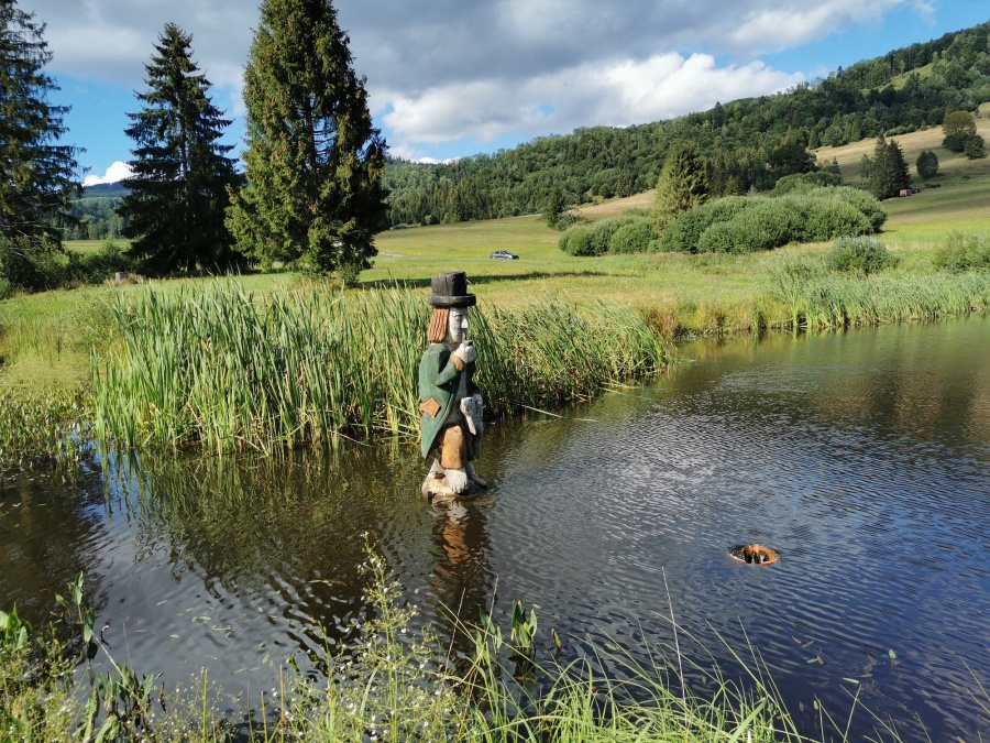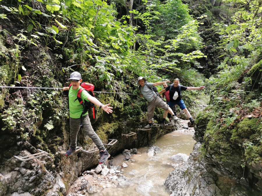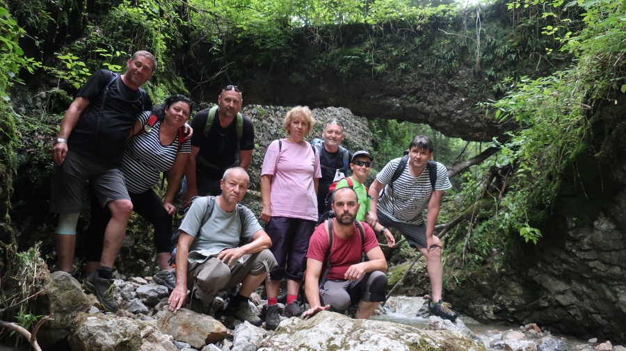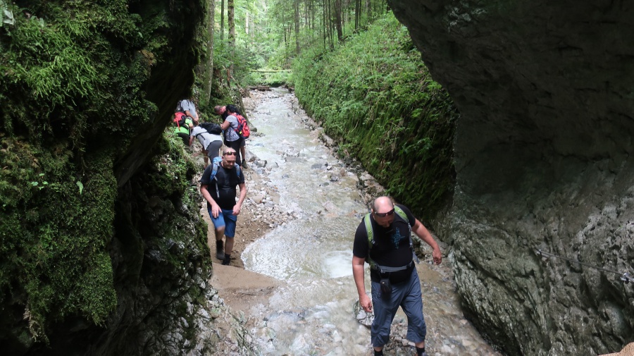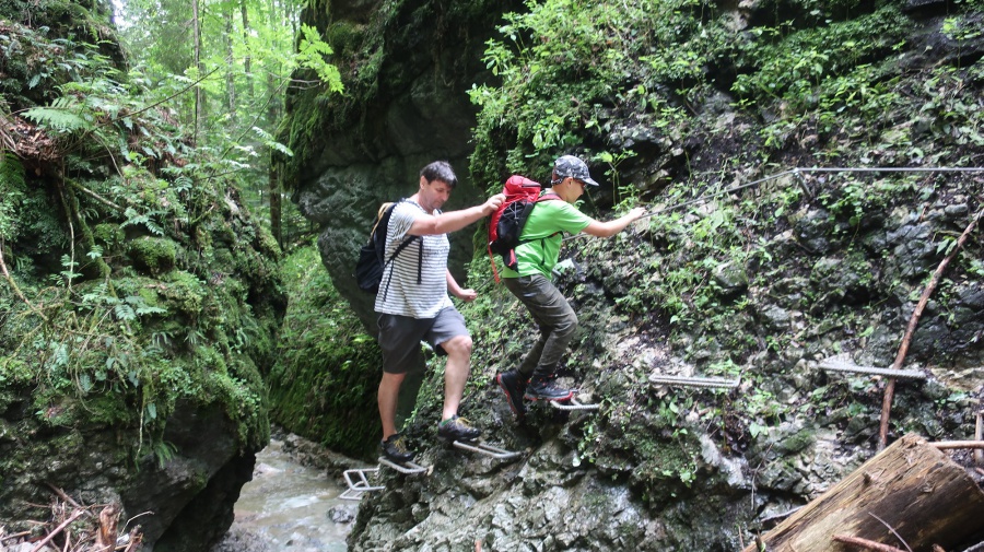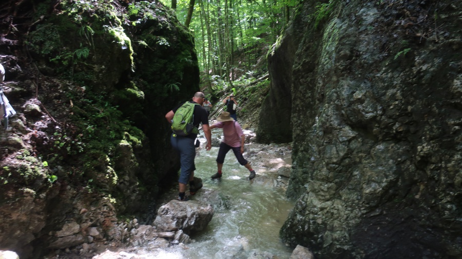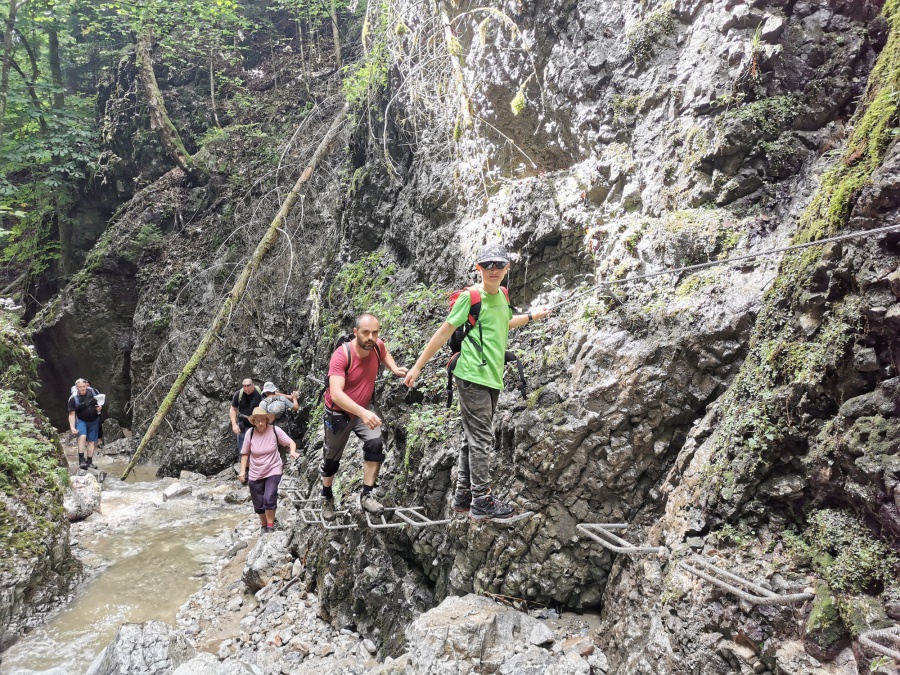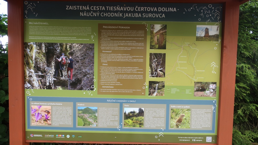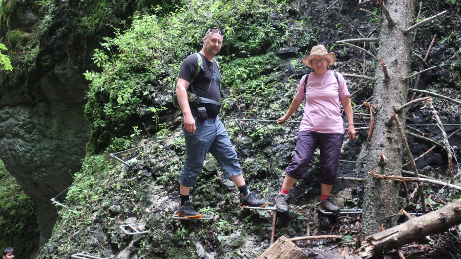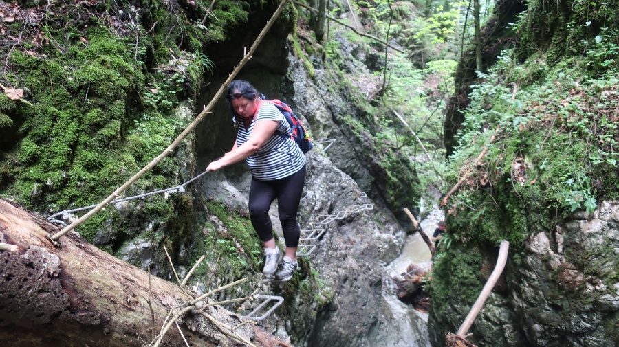 Po týždni strávenom na východe, sme sa presunuli do sedla Zbojská, kde sme absolvovali poslednú túru pred odchodom domov. Zo sedla Zbojská sme stúpali lúkami k rozhľadni-zvoničke. Vo vnútri je strmé schodisko a na každom medziposchodí sú exponáty vypchatých zvierat ( na môj vkus značne „vypelíchané”). Od rozhľadne sme pokračovali po lúke až na okraj lesa, kde sa delila turistická trasa od náučného chodníka, ktorým sme my pokračovali. Vrchná časť náučného chodníka po železničný viadukt viedla nevýrazným terénom, zarastený žihľavou a zničenými drevenými mostíkmi, skrátka chcelo by to spraviť riadnu údržbu. Od viaduktu to už bol len kúsok do Čertovej rokliny, ale ešte predtým sme išli pozrieť do Čertovej jaskyne. Viedol k nej nepríjemne strmý a hlavne šmykľavý chodník, našťastie to nebolo ďaleko. Vstup do jaskyne bol zahradený mrežou, kde bol oznam o zákaze vstupu s fotopascou. Povedané v skratke, nebolo čo vidieť. Po návrate na chodník, sme traverzom pokračovali do ústia rokliny, kde chodník pokračoval priamo cez potok. Prekonali sme niekoľko rebríkov a niekoľko krát popreskakovali potok z kameňa na kameň a boli sme na vrchu rokliny. Odtiaľ sme pokračovali krajom pasienkov, ktoré nás doviedli k Salašu Zbojská. Už len malé občerstvenie s miestnymi a hurá domov.