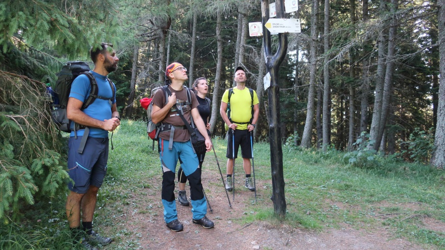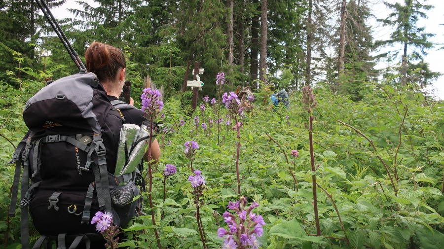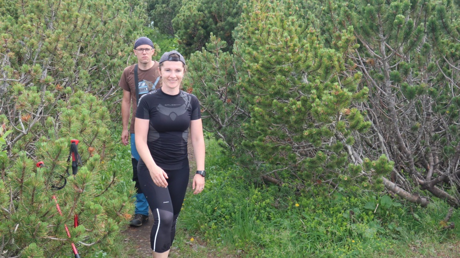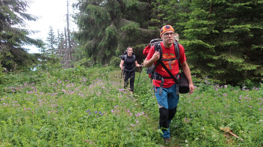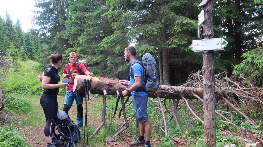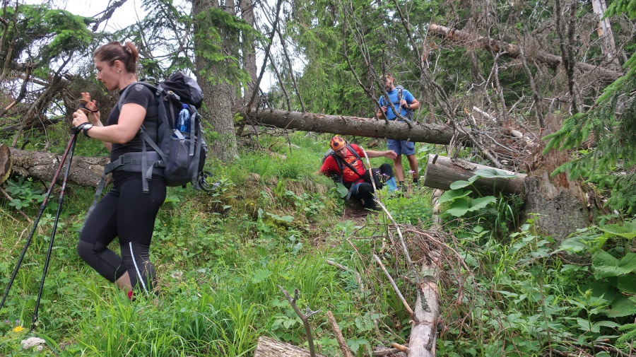 Na druhý deň pobaliť všetko akoby sme tam nikdy neboli a šup ho na krásne nádherné 1,5 hodinové stúpanie na Ohnište. Janíčko sa vzdal, po Jánskej doline zbehol k autu a čakal nás smrtonosného prevýšeniachtivých turistov na parkovisku. „ Vybehli“ sme Ohnište, úplný lesný prales, raj na zemi a dokonca v Nízkych Tatrach? Bodaj by to tam tak zostalo čo najdlhšie. Skalné útesy, skalné okno, strach z medveďa, spievanie, hvizdanie, volanie „ Ahoj macík, ideme k tebe na návštevu“ a turisti na Ohništi sa len potmehútsky usmievali ,keď sme sa vynorili z lopúchov najväčších na svete. Asi nás počuli volať na maca. Z Ohnišťa príjemná hrebeňovka na Slemä, kde je spadnuté lietadlo od vojny aj s pamätníkom, tých čo tam zahynuli. Urobili sme si obednú prestávku. Po ceste dole do Stanišovského sedla je aj pozorovací bunker. V Stanišovskom sedle rozhodovanie, či dáme Stanišovskú dolinu k jaskyni a asfalt, alebo pôjdeme ďalej po červenej na Smrekovicu a tá nás privedie rovno k autu na parkovisko. Keďže chalani zhodnotili, že čo som si vymyslela, mám si aj prejsť a nič mi neodpustia, pekne krásne ešte hore do konca na Smrekovicu aj s medvedím megahovnom. Stúpanie výživné, ale to klesanie. Pane na neby, to bol padák, aj polom tam bol, moje kolená boli úplne smutné, ale všetko sme zvládli. Pri aute hodili vaňu v potoku, dali po pive na oslavu zvládnutia tehto nápadu a šupky do kolóny k Ružomberku, potom k Strečnu a my ešte ďalej až do BA. Veľmi náročný, ale za to ozaj krásny, málo dotknutý kus Nízkych Tatier.