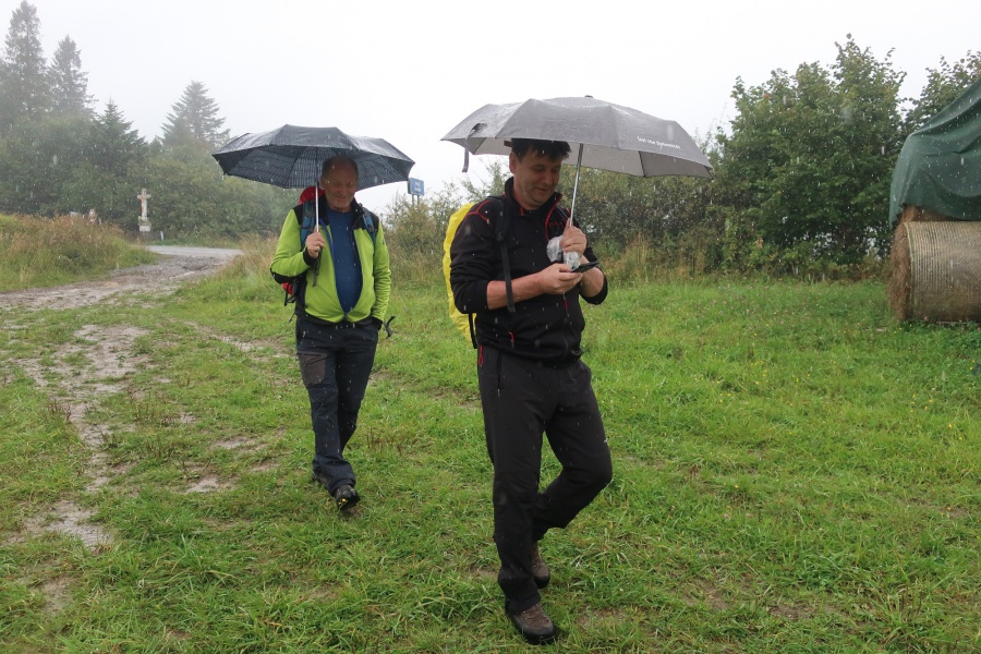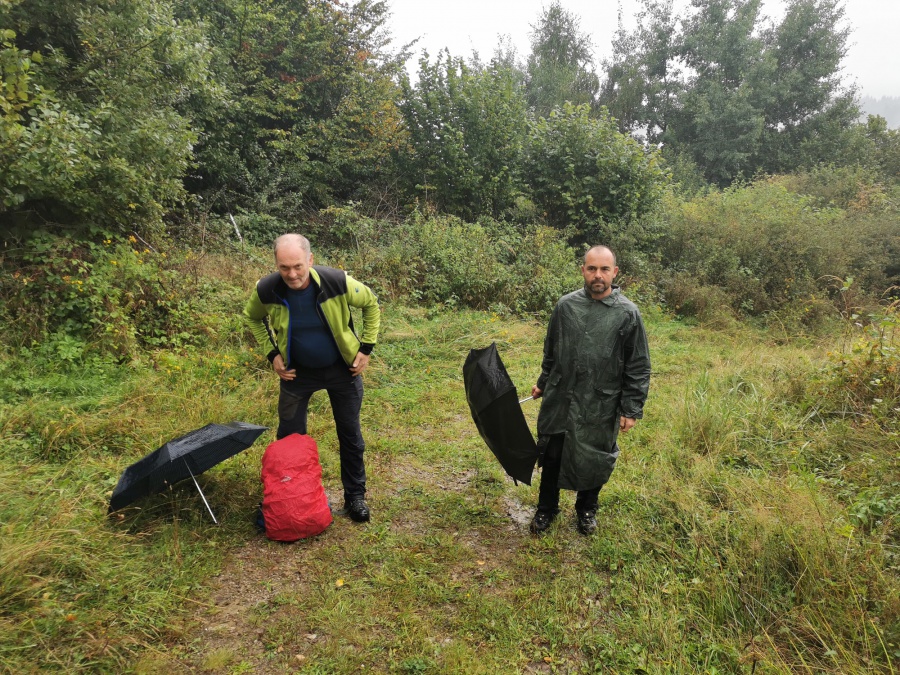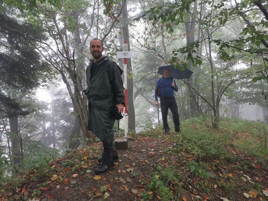 Na túru sme vychádzali zo sedlo medzi obcami Šambron a Bajerovce. V sedle bol kríž a malé odpočívadlo, kde sme si mohli zaparkovať auto. Úvod trasy viedol po rozsiahlych lúkach a len vyjazdené koľaje od poľnohospodárskych strojov naznačovali, kadiaľ ísť. Orientáciu nám sťažovala hustá hmla a ešte sa pridal aj dážď. Konečne sme sa dostali na kraj lúky (aj vďaka navigácie) a pokračovali po lesnej ceste popod drôty vysokého napätia až na hrebeň. Tam sme odbočili vľavo a po hrebení sa vydali smer vrchol. Spočiatku sme sa predierali hustými kríkmi, až neskôr sme naďabili na vychodený chodník (zrejme od zberačov húb), ktorý nás doviedol na samotný vrchol. Na vrchole bola triangulačná tyč s označením vrcholu a nadmorskou výškou. Také isté označenie bolo aj na susediacom strome. Celý vrchol bol porastený vysokými stromami, preto neposkytoval žiadne výhľady. Z vrcholu sme sa vrátili rovnakou trasou k autu a odfrčali smer Stará Ľubovňa.