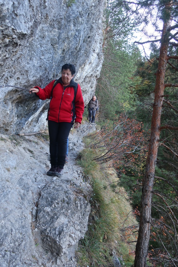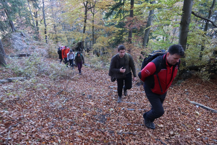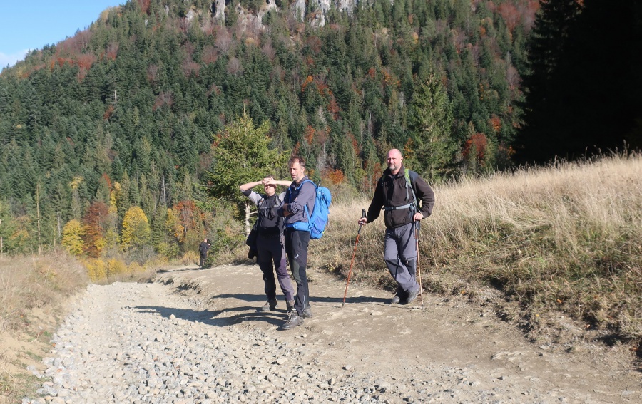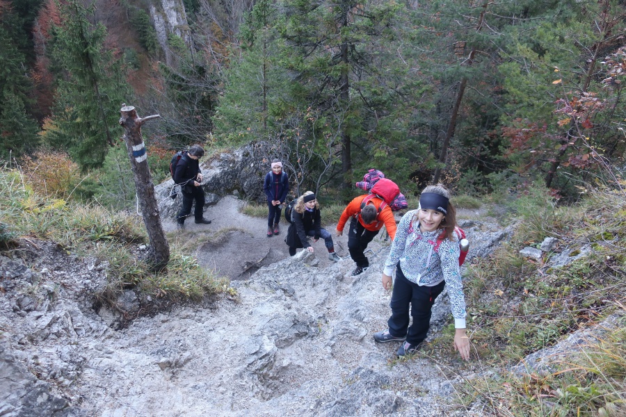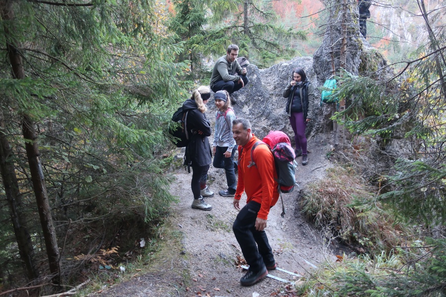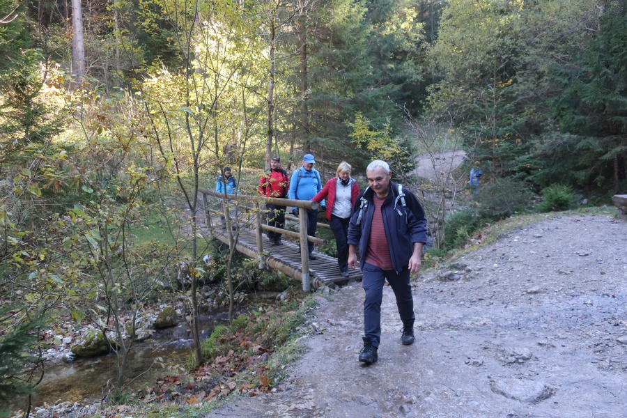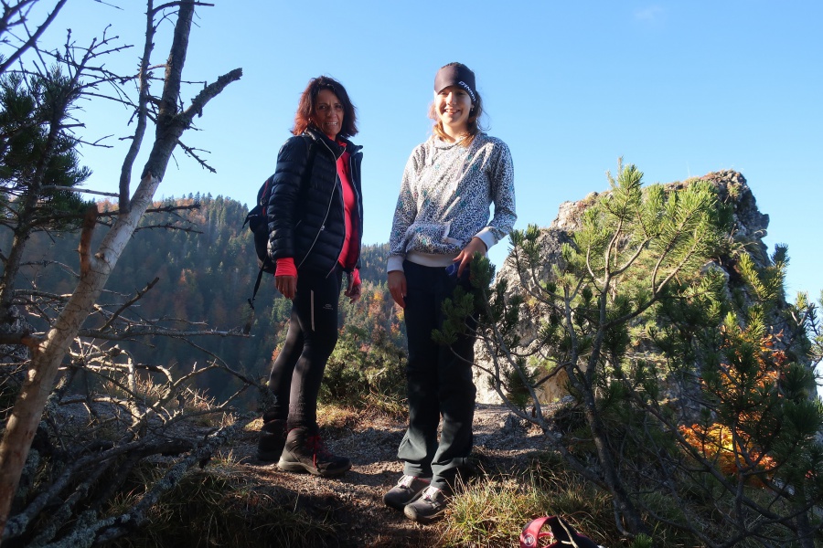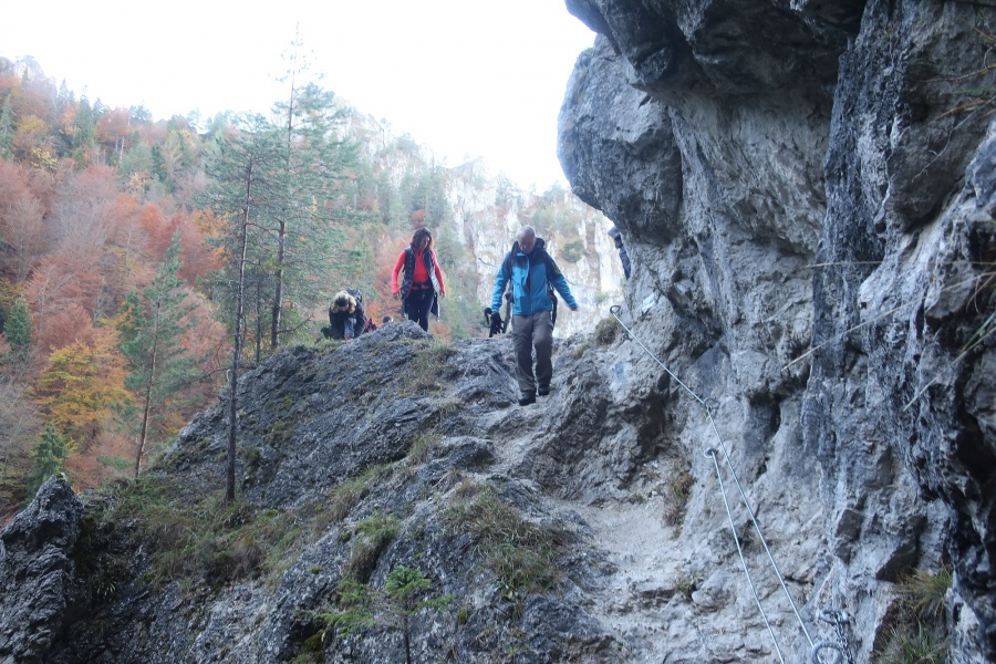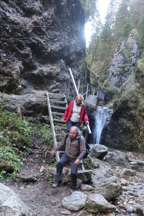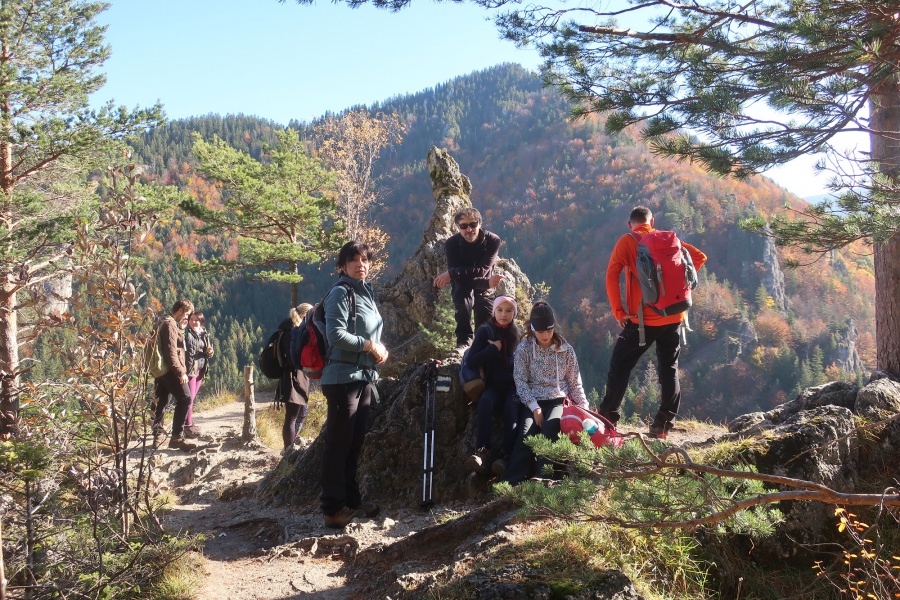 Keď sa hovorí o turistike v blízkom okolí Terchovej, každému sa vybavia Jánošíkove diery, alebo výstupy na Malý a Veľký Rozsutec a preto Zbojnícky chodníček zjavne leží v ich tieni a zabúda sa naň. To bol dôvod, prečo sme sa rozhodli pre tento výstup. Začínali sme na benzínových pumpách vo Vyšných Kamencoch a cez dedinu po modrej turistickej značke sa dostali na okraj lesa, odtiaľ miernym traverzom do doliny Obšívanka. Hneď po vstupe do doliny sa nám zjavili prvé skalné veže a hlavne jedna z najkrajších nazývaná Veľká Sokolia veža. Trasa Zbojníckym chodníčkom bola hneď od začiatku veľmi strmá, ale pohyb po nej nám uľahčovali umelo vytvorené schodíky a množstvo zaisťovacích oceľových pomôcok. Pre nás bol tento výstup veľmi atraktívny, lebo sme nevedeli, čo nás čaká za ďalším rohom. Trasa nám ponúkala množstvo strmých zrázov a skalných veží. Prechádzali sme aj cez asi 20 metrov dlhý vzdušný traverz skalnou stenou, ktorý bol zaistený oceľovým lanom. Prechod nebol zložitý, ale aj tak niektorí potrebovali pomôcť (najmä psychicky). Krátkym úsekom po lese sme sa dostali do sedla Malé nocľahy (tu sme si spravili krátku pauzu s malým občerstvením), kde bola možnosť pokračovať po žltej značke na Sokolie, no my sme pokračovali stále po modrej. Chvíľkový pobyt na hrebeni, nám dožičil odpočinúť si unaveným nohám. Keď sme si mysleli, že nás už nemá čo prekvapiť, pred nami sa zjavila úzka skalná štrbina, z ktorej sme schádzali po zaistenom rebríku. Tak ako sme strmo stúpali, tak sme aj strmo klesali. Rýchlo sme sa dostali k miestu, odkiaľ bol výhľad na údolie tiesňavy, kde na nás čakal autobus. Z parkoviska v tiesňave sa naša skupina porozdeľovala a niektorí pokračovali cez Boboty a Dolné diery do cieľa na Bielom potoku. Početná skupina sa dala zaviesť do Štefanovej a cez Podžiar a Dolné diery zišli na Biely potok. Posledná skupina sa rozhodla pre výstup k rozhľadni nad Terchovou nazývanej tiež „Terchovské srdce”.