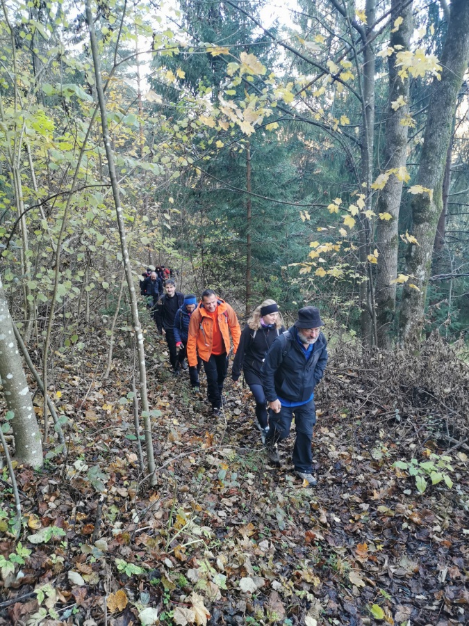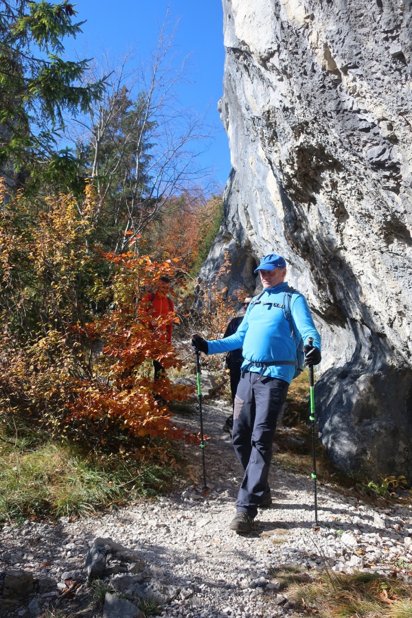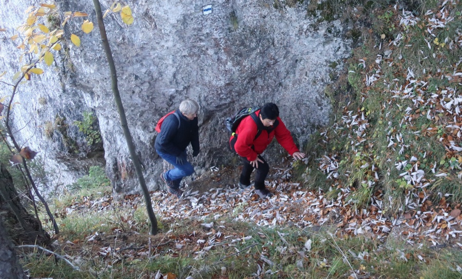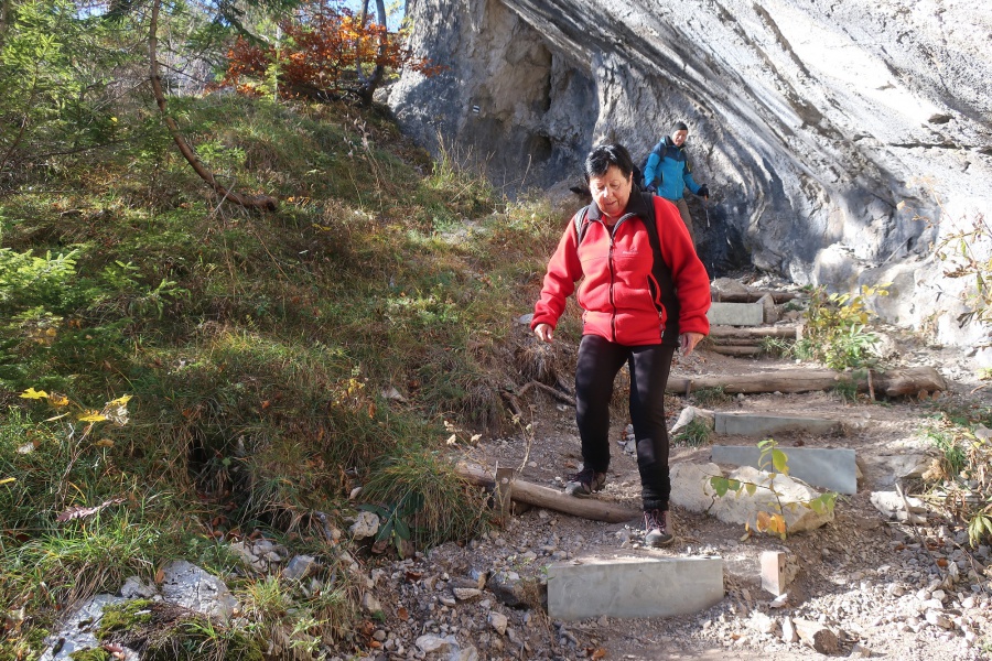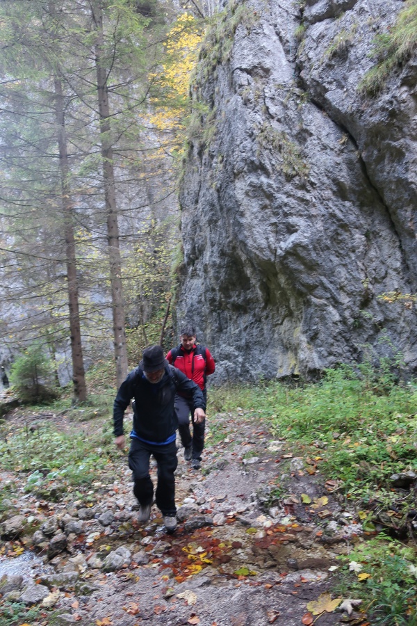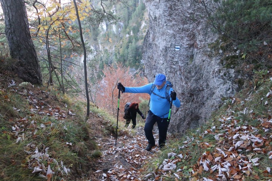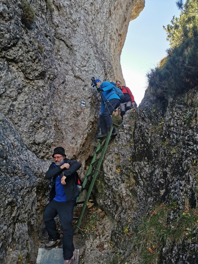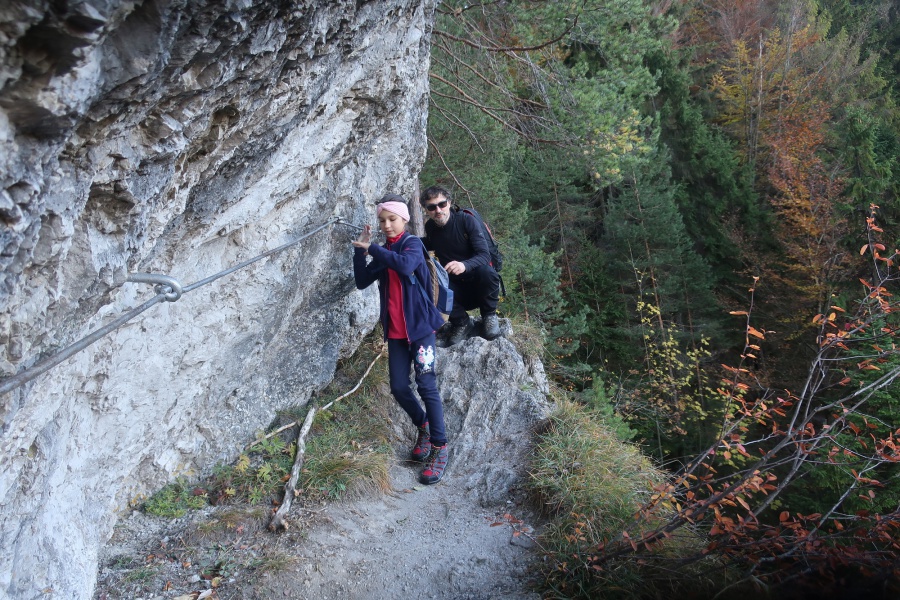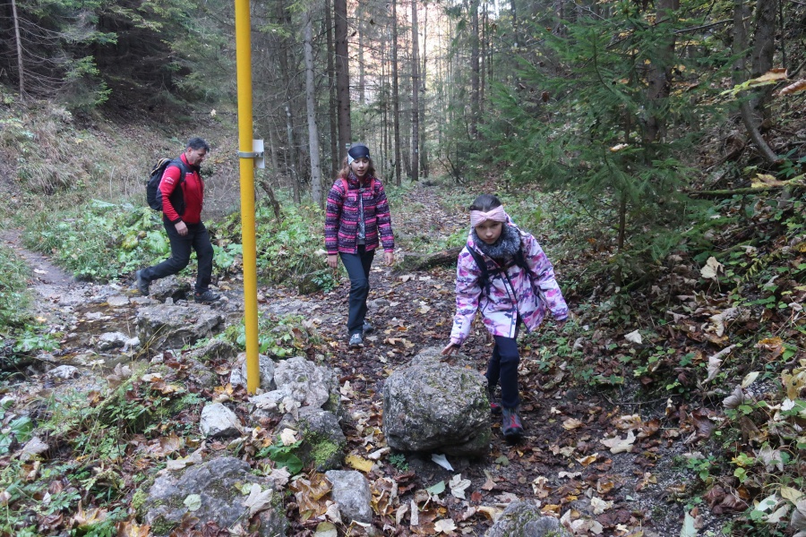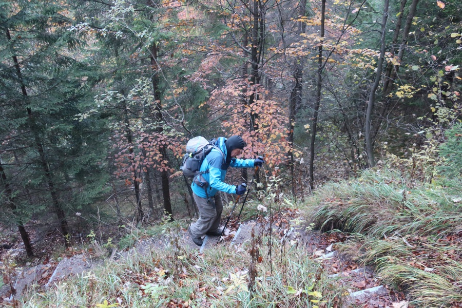 Keď sa hovorí o turistike v blízkom okolí Terchovej, každému sa vybavia Jánošíkove diery, alebo výstupy na Malý a Veľký Rozsutec a preto Zbojnícky chodníček zjavne leží v ich tieni a zabúda sa naň. To bol dôvod, prečo sme sa rozhodli pre tento výstup. Začínali sme na benzínových pumpách vo Vyšných Kamencoch a cez dedinu po modrej turistickej značke sa dostali na okraj lesa, odtiaľ miernym traverzom do doliny Obšívanka. Hneď po vstupe do doliny sa nám zjavili prvé skalné veže a hlavne jedna z najkrajších nazývaná Veľká Sokolia veža. Trasa Zbojníckym chodníčkom bola hneď od začiatku veľmi strmá, ale pohyb po nej nám uľahčovali umelo vytvorené schodíky a množstvo zaisťovacích oceľových pomôcok. Pre nás bol tento výstup veľmi atraktívny, lebo sme nevedeli, čo nás čaká za ďalším rohom. Trasa nám ponúkala množstvo strmých zrázov a skalných veží. Prechádzali sme aj cez asi 20 metrov dlhý vzdušný traverz skalnou stenou, ktorý bol zaistený oceľovým lanom. Prechod nebol zložitý, ale aj tak niektorí potrebovali pomôcť (najmä psychicky). Krátkym úsekom po lese sme sa dostali do sedla Malé nocľahy (tu sme si spravili krátku pauzu s malým občerstvením), kde bola možnosť pokračovať po žltej značke na Sokolie, no my sme pokračovali stále po modrej. Chvíľkový pobyt na hrebeni, nám dožičil odpočinúť si unaveným nohám. Keď sme si mysleli, že nás už nemá čo prekvapiť, pred nami sa zjavila úzka skalná štrbina, z ktorej sme schádzali po zaistenom rebríku. Tak ako sme strmo stúpali, tak sme aj strmo klesali. Rýchlo sme sa dostali k miestu, odkiaľ bol výhľad na údolie tiesňavy, kde na nás čakal autobus. Z parkoviska v tiesňave sa naša skupina porozdeľovala a niektorí pokračovali cez Boboty a Dolné diery do cieľa na Bielom potoku. Početná skupina sa dala zaviesť do Štefanovej a cez Podžiar a Dolné diery zišli na Biely potok. Posledná skupina sa rozhodla pre výstup k rozhľadni nad Terchovou nazývanej tiež „Terchovské srdce”.