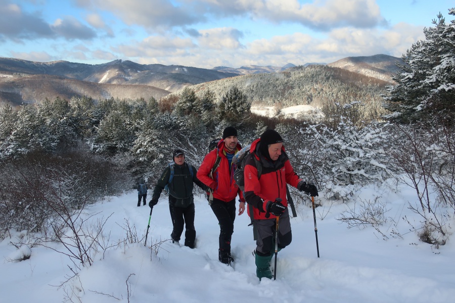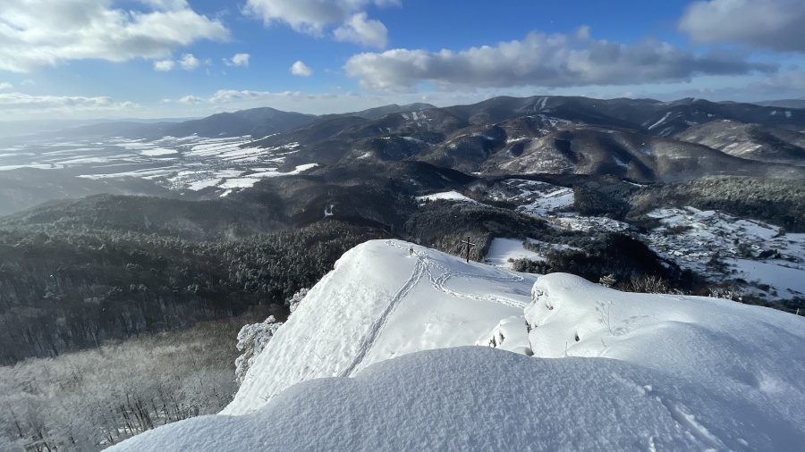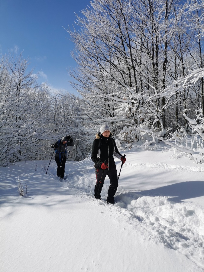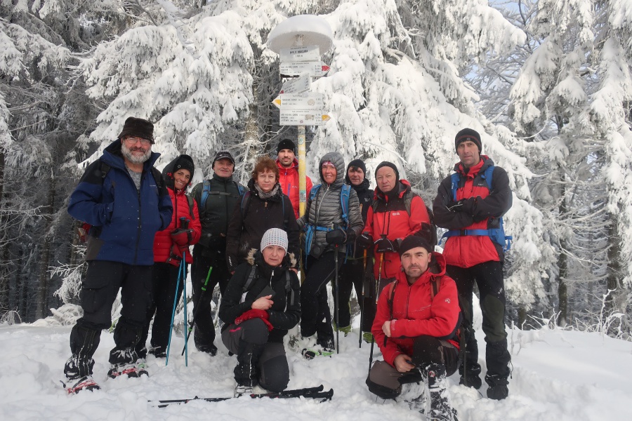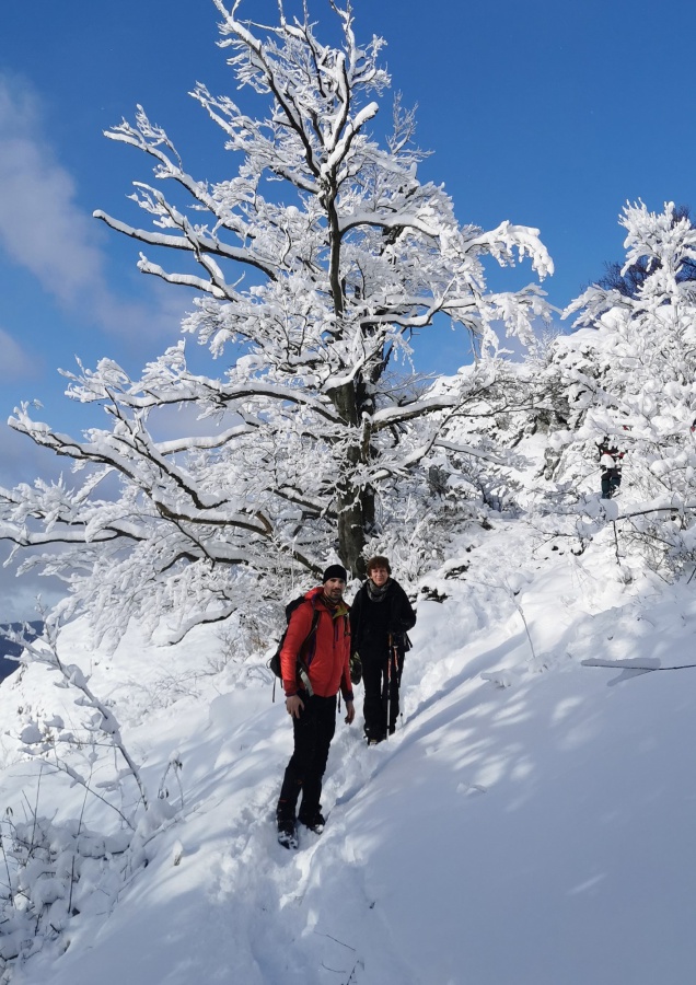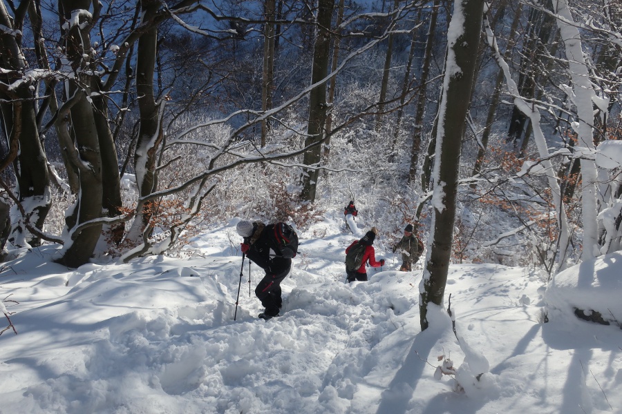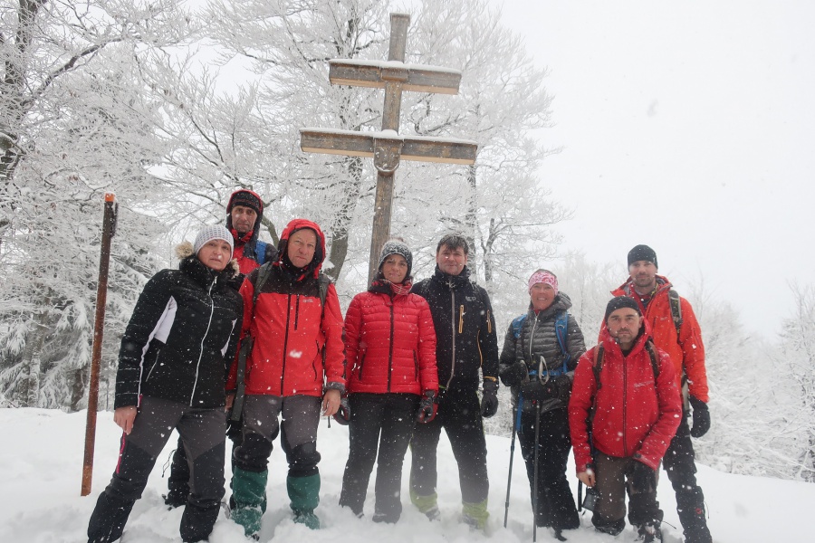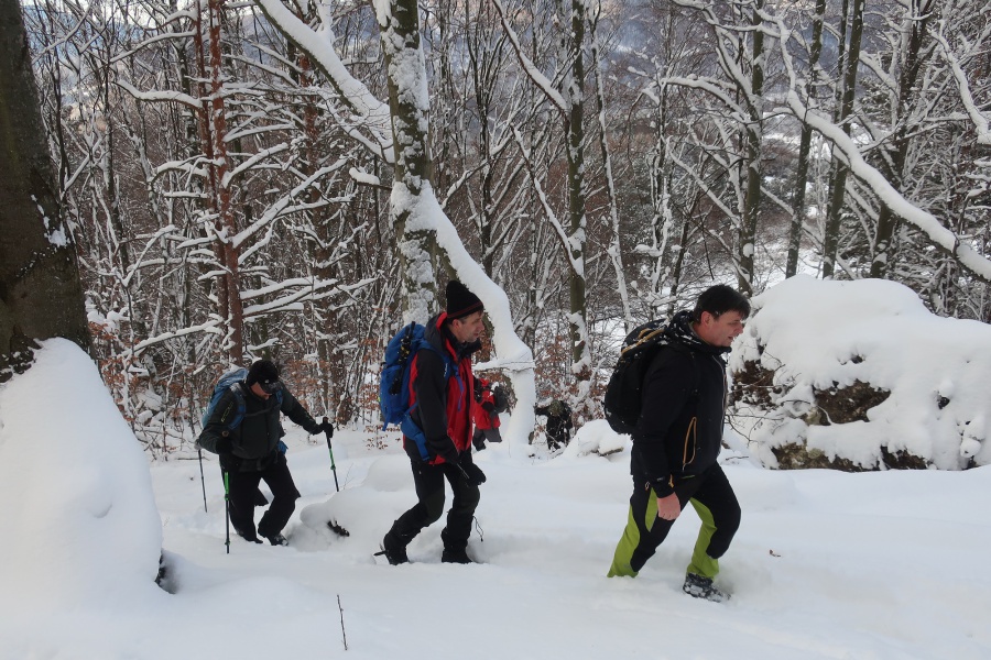 Až koniec januára priniesol výdatnejšie sneženie a to nielen v severnejšej, ale aj južnejšej časti Slovenska. Už pri vstupe do dediny nás zaskočila výška snehu, ktorú práve odhŕňal traktor s radlicou. Našli sme si odhrnuté miesto na parkovanie, kúsok od obecného úradu (nebolo to však jednoduché, lebo sme boli na troch autách). Po krátkom zorientovaní sa, vyrazili sme po žltej turistickej značke smerom na mohutné skalné bralo nad dedinou - Temešská skala. Za dedinou sme stúpali po lúke, ktorú lemoval borovicovo - smrekový lesík. Po vstupe do hustého lesa sa chodník začal strmo dvíhať, čo nám sťažovalo výstup na zľadovatelom povrchu a po chvíľke nás donútilo si nasadiť protišmykové mačky. Asi po hodine výstupu sa nám zjavil smerovník v Temešskom sedle a krátkym výstupom po skalnom teréne sme stáli na vrchole Temešskej skaly, ktorá nám ponúkala nádherné výhľady na Homôlku, Rokoš a vodnú nádrž Nitrianske Rudno. Rovnakou trasou sme sa vrátili do sedla, kde sme pokračovali smerom na Malú Maguru. Hneď na úvod to vyzeralo poriadne divoko, samé popadané stromy krížom krážom nám z výstupu spravili detskú preliezačku. Už len krátky strmý výstup a stáli sme pri smerovníku na Malej Magure. Tu pri pohľade na hodinky, sme zistili, že máme časovú rezervu a pokračovali sme na samotnú Maguru. Tento úsek viedol mierne zvlneným terénom až na najvyšší bod Magury, kde bol osadený drevený dvojkríž. Tu sme naďabili na skupinku miestnych dobrodruhov, ktorý tu bivakovali. Pri návrate na Malú Maguru sa naša skupina rozdelila, vodiči išli naspäť do Temeša pre autá a zbytok skupiny zostupoval prudkým klesaním do Čavoja, kde sme sa stretli a po občerstvení v miestnej ,,reštaurácii,, sme cestovali domov.