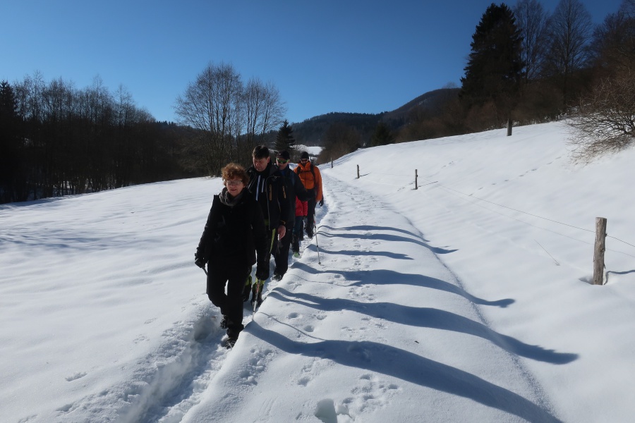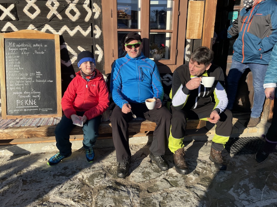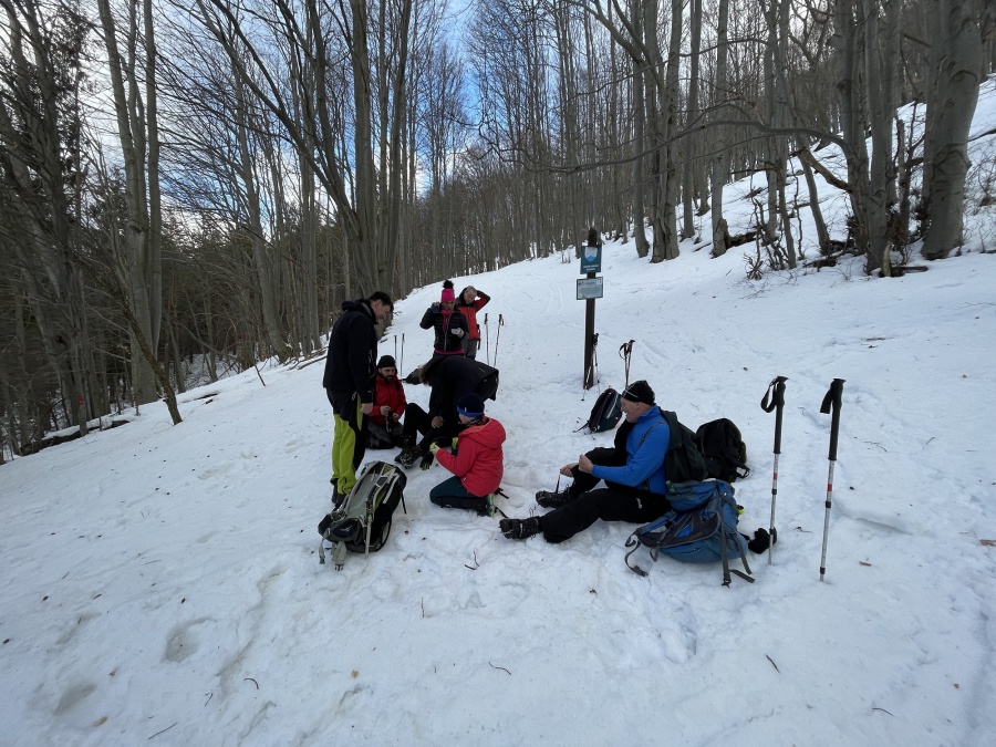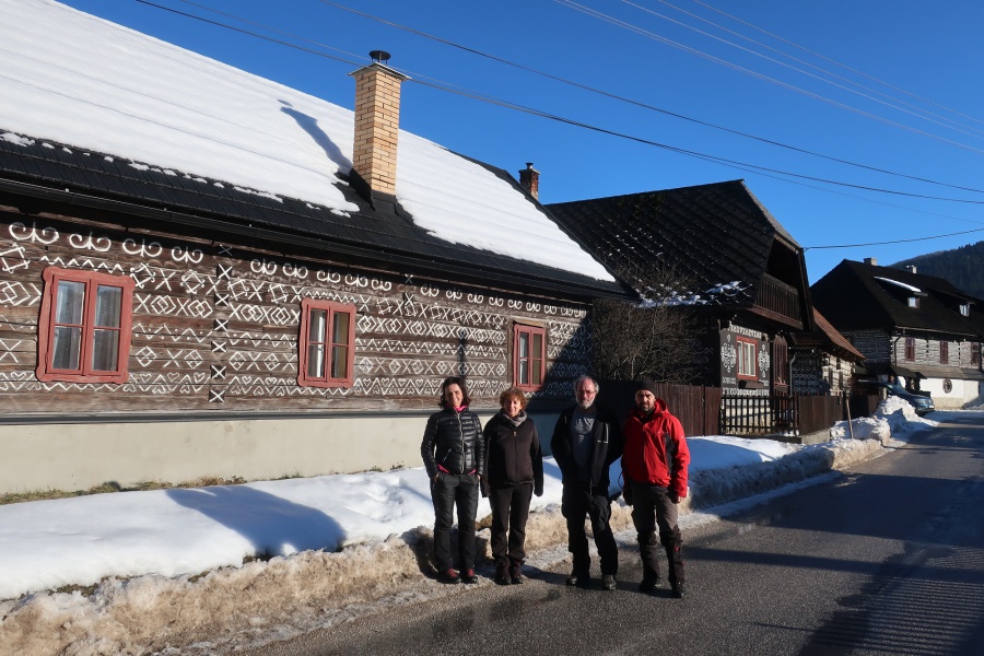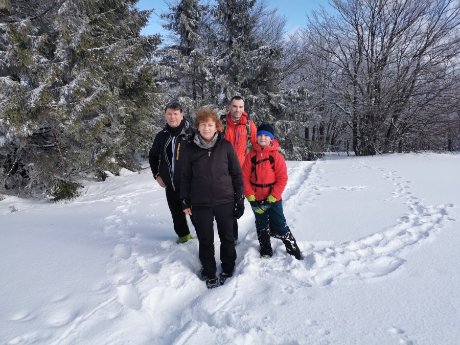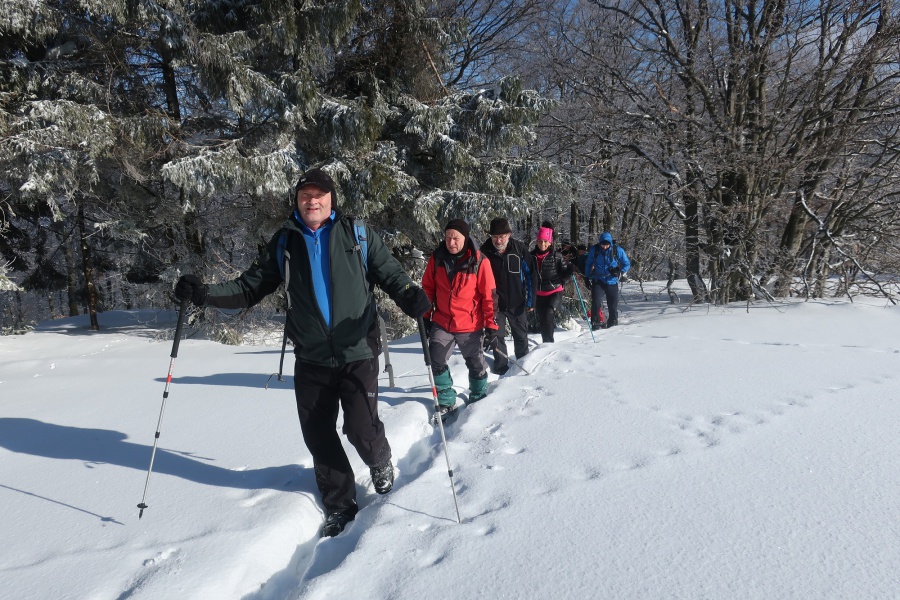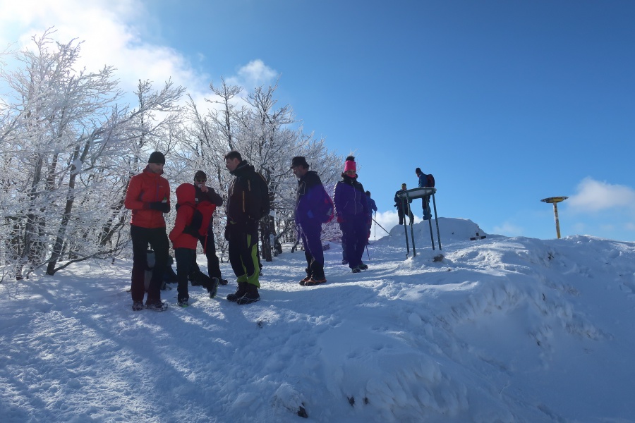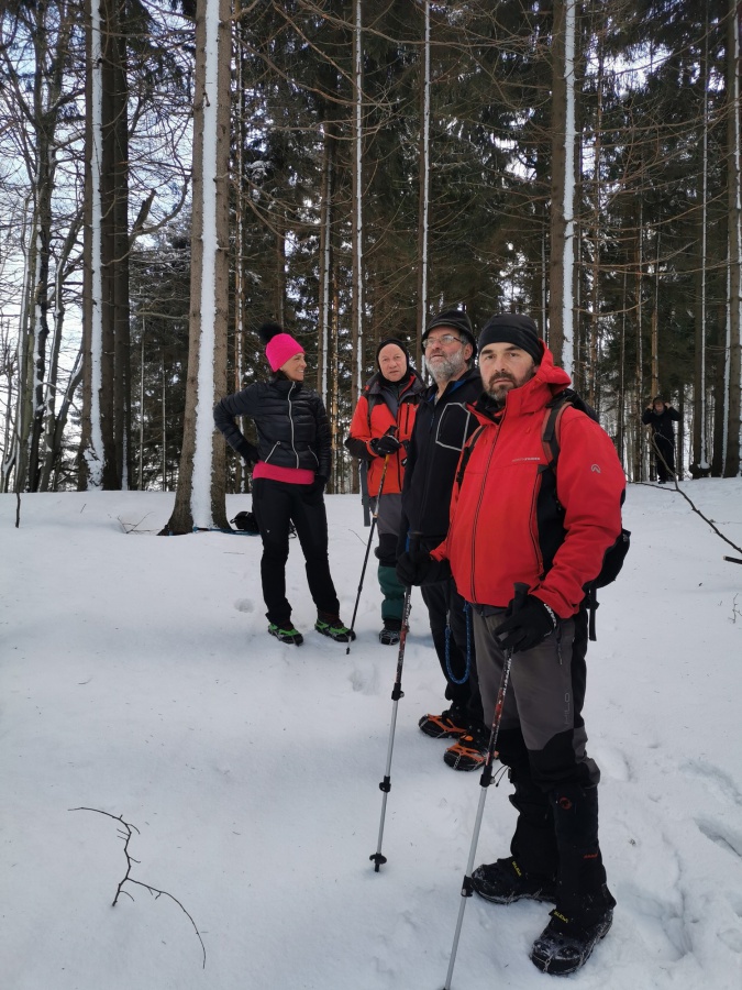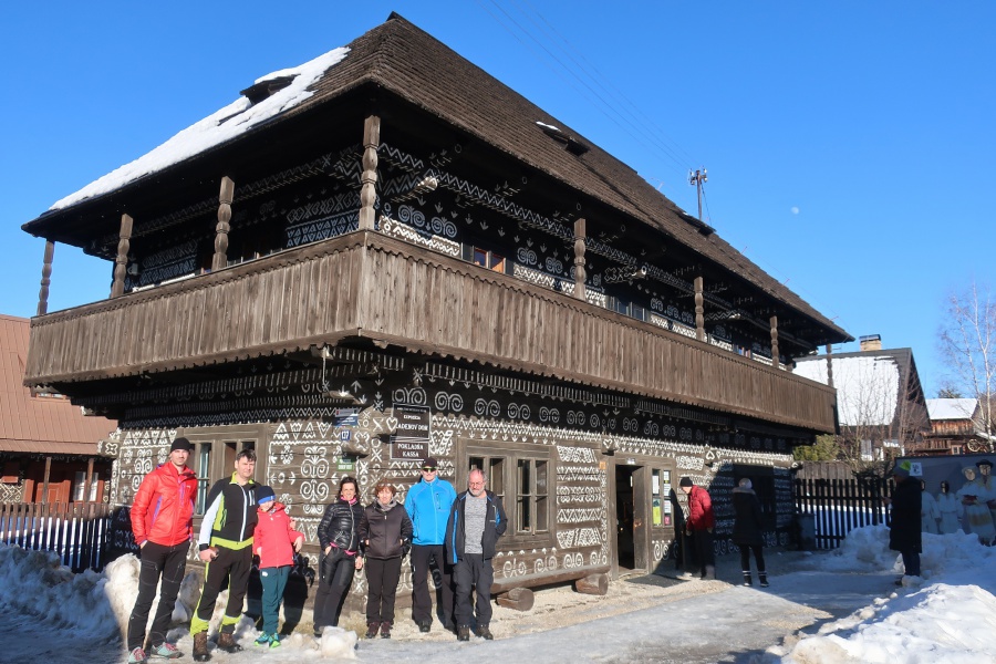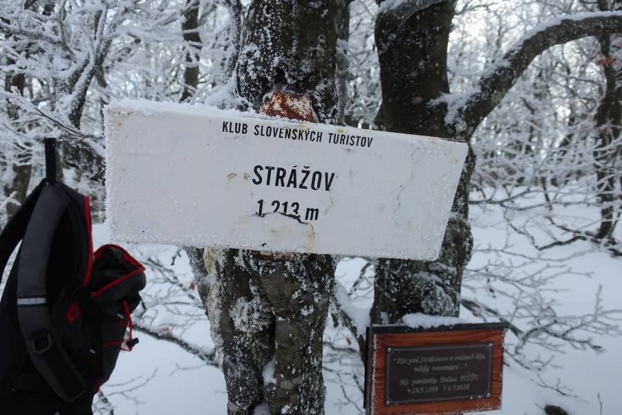 Po dvoch rokoch sme sa aj my opäť vybrali vystúpiť na tento skvost, tento krát za slnečného aj keď mrazivého počasia, s dostatkom snehu. Začínali sme v obci Zliechov po červenej turistickej značke. Už prvé metre po zamrznutom snehu na lúkach, nám poskytovali pekné pohľady na vrchol Strážova. Po prekročení potoka sme začali mierne stúpať po krátkej lúke a po niekoľkých minútach vošli do lese, kde bola umiestnená tabuľa, ktorá nám oznamovala, že sme v prírodnej rezervácii s V. stupňom ochrany. Hneď na prvej strmine, sme nútení si navliecť protišmykové mačky. Cítiac sa bezpečne, sme sa dostali do Sedla pod Strážovom, odkiaľ sme už pokračovali spoločne so žltou značkou. Najskôr miernym traverzom a neskôr krátkou serpentínou sme sa dostali k smerovníku ,,Lúka pod Strážovom,, s nádhernými výhľadmi na Kľak a Martinské hole. Z lúky nás čakalo už len krátke stúpanie cez lesík a stáli sme na samotnom vrchole. Pri kochaní sa z vrcholu, niekomu skrsla myšlienka, že poslať vodičov pre autá do Zliechova a my ostatní zídeme do Čičmian a pozrieme si niektorú z ponúkaných expozíc. Zostup nadol bol už pomerne rýchly, približne za hodinku sme už kráčali po asfaltke smerujúcej do Čičmian.