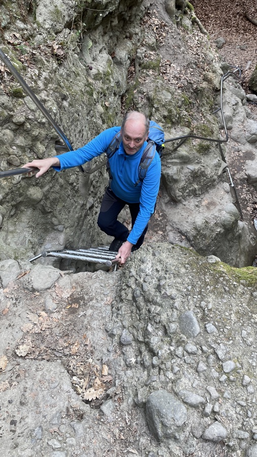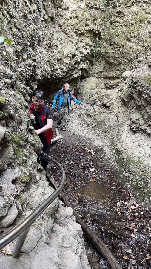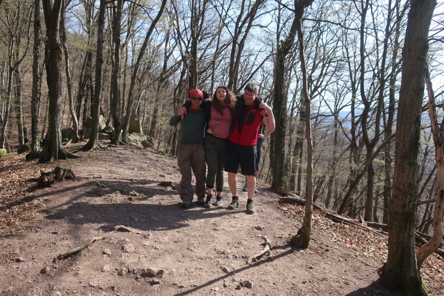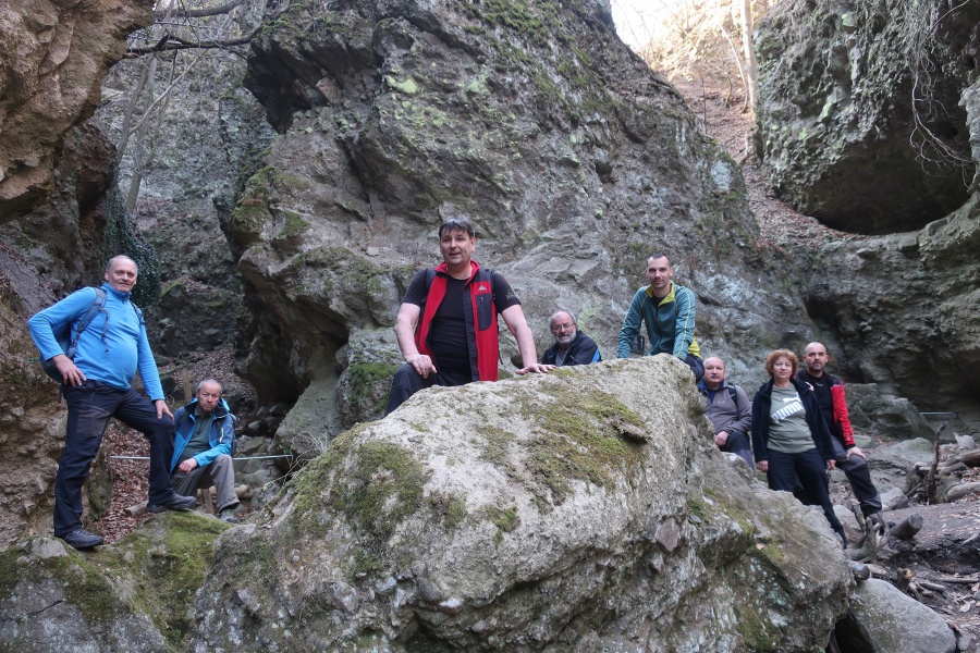 Ani nevieme, kde sme prvý krát počuli, že v Maďarsku sa nachádza roklina pripomínajúca tiesňavy v Slovenskom raji. Po naštudovaní sme zistili, že je to kúsok za hranicami pri Štúrove. Začínali sme v dedinke Dőmős a pohodlným dobre značeným lesným chodníkom sme sa dostali k rokline Rám Szakadék. Tu sme sa dostali k prvým vodopádom lemovanými skalnými stenami, ktoré nám skutočne pripomínali rokliny Slovenského raja. Najťažšie prechodové miesta boli zabezpečené rebríkmi a zábradlím podobnému vodovodnému potrubiu. Samotný prechod rokliny nám trval cca jednu hodinu a na konci rokliny bolo príjemné oddychové miesto. Kúsok za oddychovým miestom sa naša skupina rozdelila na dve menšie. Prvá išla po cyklistickom chodníku a my sme pokračovali po žlto značenom chodníku na Dobogókő. Tu sme si spravili krátku prestávku na doplnenie energie, výber sme mali s niekoľkých druhov guľášu. Odtiaľ sme pokračovali po modrej značke cez vrchol Kerek-bükk (685 m) a začali sme stíhať našu prvú skupinu. Pri turistickom prístrešku sme pokračovali po červenom turistickom chodníku, ktorým sme sa dostali na protiľahlú hrebeňovku s rozhľadňou Prédikálószék-kilátó (kazateľská stolica). Názov kazateľnice pochádza z toho, že skalnatý vrchol hory pripomína kazateľnicu. Po výstupe na vrchol rozhľadne sa nám otvorila jedna z najkrajších panorám Maďarska s prekrásnym ohybom Dunaja, výhľadom na Börzsöny, Nagymaros a Visegrád. Po krátkej prestávke sme pokračovali k záverečnému úseku Vadálló-kövek (divoké kamene). Pohybovali sme sa medzi bizarnými skalnými vežami, ktoré boli šmykľavé a pohyb bol veľmi nebezpečný. Na konci skál nás oslovila turistka, až neskôr sme sa dozvedeli, že je z Budapešti a má problémy z nohou. Ani trochu sme neváhali a pomohli sme jej zísť po strmom sutinovom svahu k autu. Najskôr nastúpilo naše kulturistické eso v mušej váhe, ale po pár metroch to vzdal. Keď sme pochopili, že tadiaľto cesta nevedie, spoločnými silami sme ju zniesli dolu. Až doma sme sa dozvedeli, že má pretrhnutý kolenný väz a poškodený meniskus a čaká ju operácia. Prajeme skoré uzdravenie Erika.