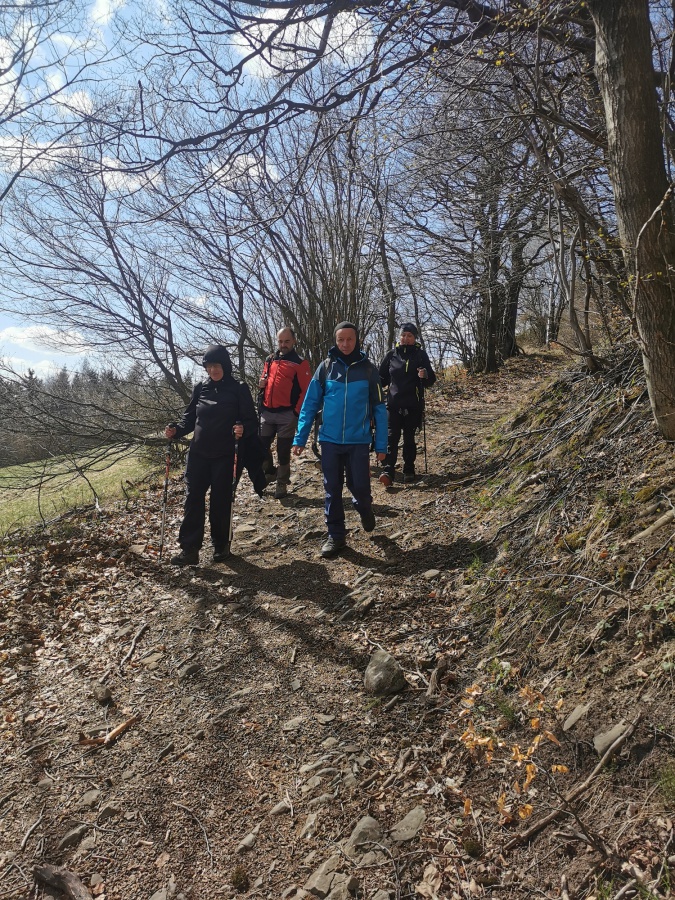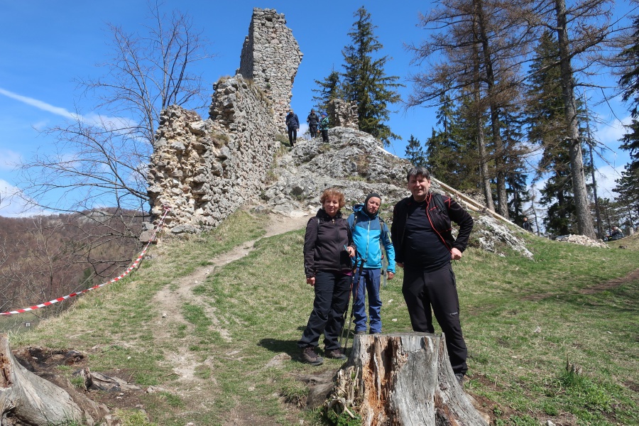 Na trasu sme vychádzali z obce Krivoklát po Lesníckom náučnom chodníku Bolešov-Krivoklát. Hneď za obcou sme vstúpili do azda najmenšej tiesňavy na Slovensku a pokračovali po prevažne asfaltovej ceste až k malej drevenej rozhľadni Krivoklát, ktorá pripomína skôr záhradný domček. Po necelej polhodine od rozhľadne sme prišli k horárni Chrastková, ktorá sa nachádza v najvyššom mieste náučného chodníka. Horáreň, dosiaľ obývanú bez elektrického prúdu, spomína už kňaz a barokový básnik Hugolín Gavlovič, ktorý si tu istý čas liečil pľúca. Od horárne nás asfaltová cesta doviedla k nenápadnej odbočke na vápencové bralá Kozie rohy. Z brál sme sa rovnakou trasou vráti k horárni, odkiaľ sme už pokračovali po zeleno značenom turistickom chodníku, ktorým sme sa dostali pod Biely vrch. Keďže značená trasa ide popod Biely vrch, na vrchol sme sa dostali dobre vychodeným neznačeným chodníkom. Napriek tomu, že vrchol nebol príliš vysoký, predstavoval veľmi pekné vyhliadkové miesto hlavne na Vršatecké bralá. Ďalšou zástavkou na trase sme mali hrad Vršatec, zrúcanina nad obcou Vršatecké Podhradie. Prístup na hrad viedol nenáročným náučným chodníkom. Pred záverečným úsekom (stále klesanie po cyklo chodníku) k autám v Krivokláte, sme si baterky dobili v hoteli Vršatec.