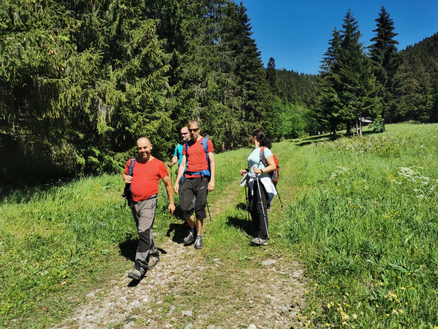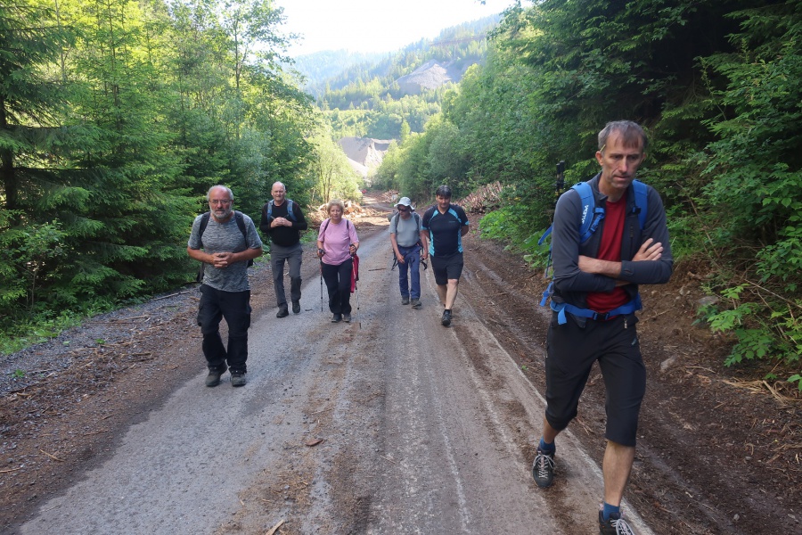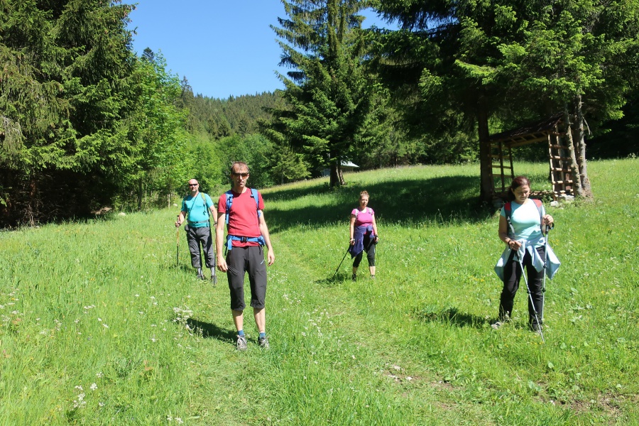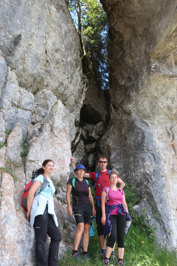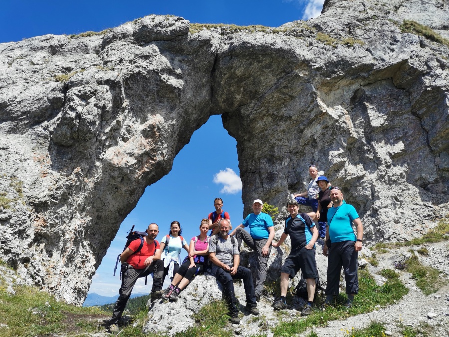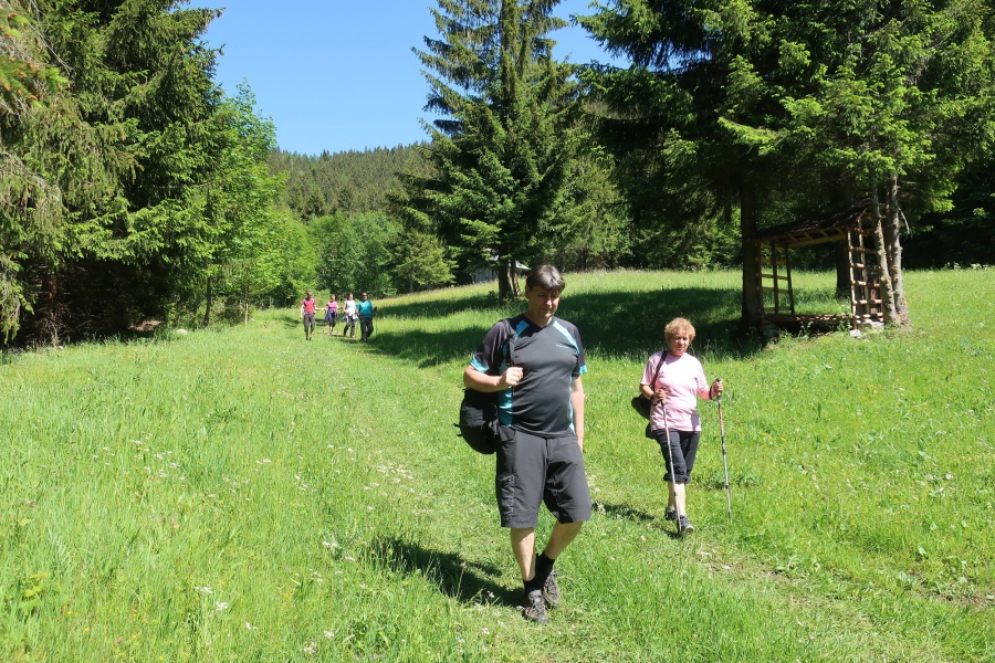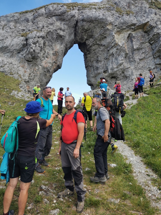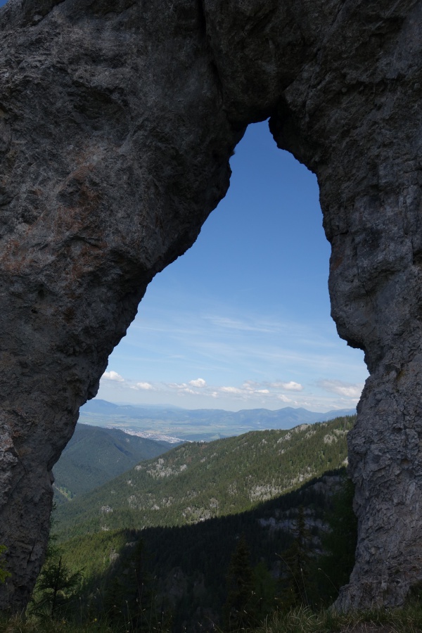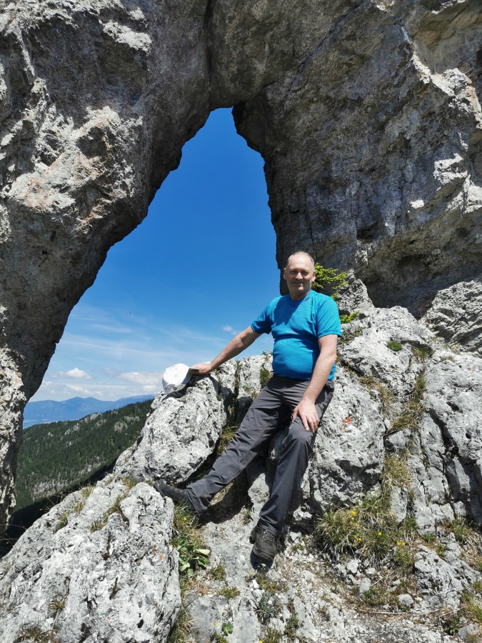 Túto lokalitu sme si vybrali preto, lebo sme sa spoliehali, že tam bude minimum turistov. Opak bol pravdou. Meteorológovia sľubovali pekný a slnečný deň, ktorý sa aj potvrdil. My sme si vybrali trasu cez dva vrcholy Ohnište a Slemä. Autobus nás doviezol po kameňolom v Malužinej a Svidovskou dolinou po asfaltovej ceste (žltá značka) sme začali výstup. Asi po trištvrte hodine sme opustili asfaltku a stále miernym prevýšením, už tentoraz po lesnom chodníku, cez ktorý sem – tam pretekala voda z blízkeho potoka, sme pokračovali do Svidovského sedla. Zo sedla bolo vidieť skalné zrázy Ohnišťa, ale predovšetkým hlavný hrebeň Nízkych Tatier a jeho dominantu Ďumbier. Po krátkom občerstvení pokračujeme krajom lúky a po cca 5 minútach sme vošli do lesa, kde na nás čakala pomerne slušná strmina, ktorá končila až na lúkach na Prednej poľane. K vrcholu Ohnišťa viedla vrcholová značka, ktorá nás doviedla na malú lúčnu plošinku z výhľadmi na hrebeň Nízkych Tatier. Keďže sme nikde nenašli oznam zakazujúci pokračovať k skalnému oknu, tak sme pokračovali neznačeným chodníkom popod skalné steny až k tomuto unikátnemu prírodnému skvostu. Za sucha, ako sme mali my, tento chodník sa dal prejsť bez problémov, ale pri mokrej variante by to bolo nebezpečné, lebo tam neboli žiadne zabezpečovacie pomôcky. Pohľad na samotné okno a okolité vrcholy bol skutočne fascinujúci. Návrat späť na vrchol, sme si predĺžili okolo Veľkej ľadovej priepasti, ktorá pripomínala skôr cestu do pekla, ako jaskyňu. Po návrate z Ohnišťa a prechode lúkami Prednej a Zadnej poľany sme sa dostali k záverečnému výstupu na Slemä, kde kúsok od vrcholu bol pamätník z II. Svetovej vojny a zvyšky zrúteného lietadla, ktoré z neznámych príčin havarovalo na tomto mieste. Zo Slemä sme zišli prudkými serpentínami k chatovej oblasti a potom po širokom chodníku až na parkovisko pri Stanišovských jaskyniach, kde na nás čakal autobus.