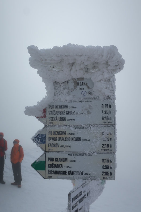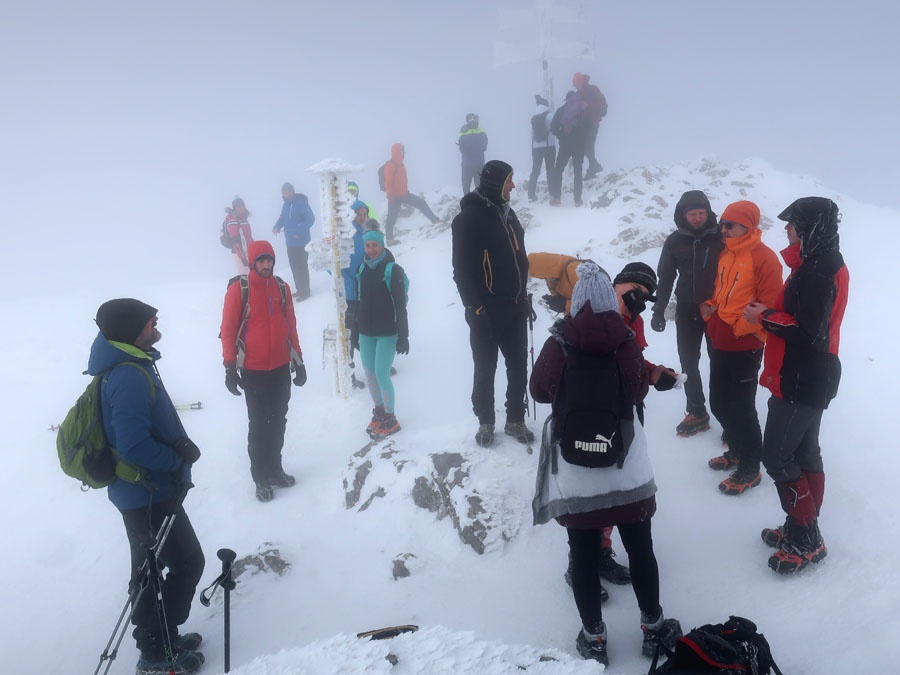 Vrcholová fotka bola rýchla, pretože počasie sa nezlepšilo a bolo veterno s dohľadnosťou max. 30 m.