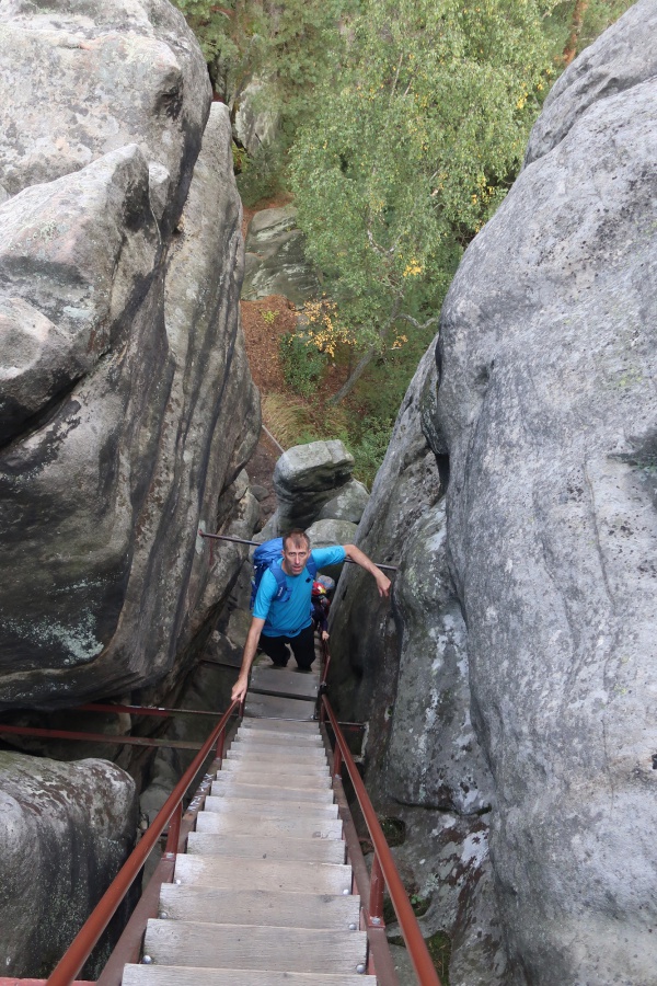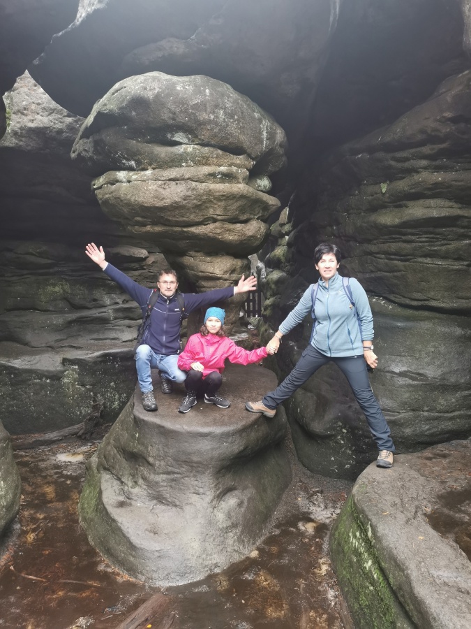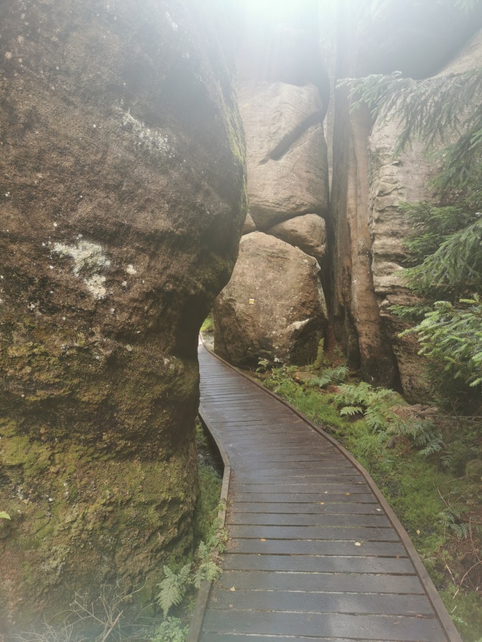 Štvordňový autobusový zájazd sme začali návštevou Stolových hôr v Poľsku. Parkovať sa dalo na spodnom parkovisku, odkiaľ vedie asi 50 minútová pohodlná cesta k vstupu do skál. My sme využili možnosť parkovania na hornom parkovisku priamo u vchodu do skál. Bolo potrebné si zistiť vstup na horné parkovisko, hore a dole sa išlo v polhodinových intervaloch. Cena parkovného bola 70 zł. a vstup 10 zł./osoba.